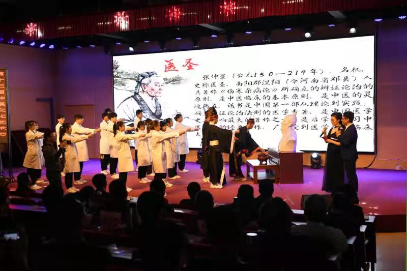 王立义在致辞中首先代表全校师生,向2021级新生的到来表示热烈的欢迎!向筹办仲景文化艺术节的各位师生员工表示诚挚的问候!他指出,在全国人民顺利实现第一个百年奋斗目标、意气风发奔向第二个百年奋斗目标之际,我校也迎来了建校70周年,开启了“十四五”高质量发展、跨越式发展的新篇章,复建张仲景国医大学、实现办学层次提升的夙愿即将实现,学校发展前景将更加美好,“仲景”医学品牌将被我们擦得更亮。