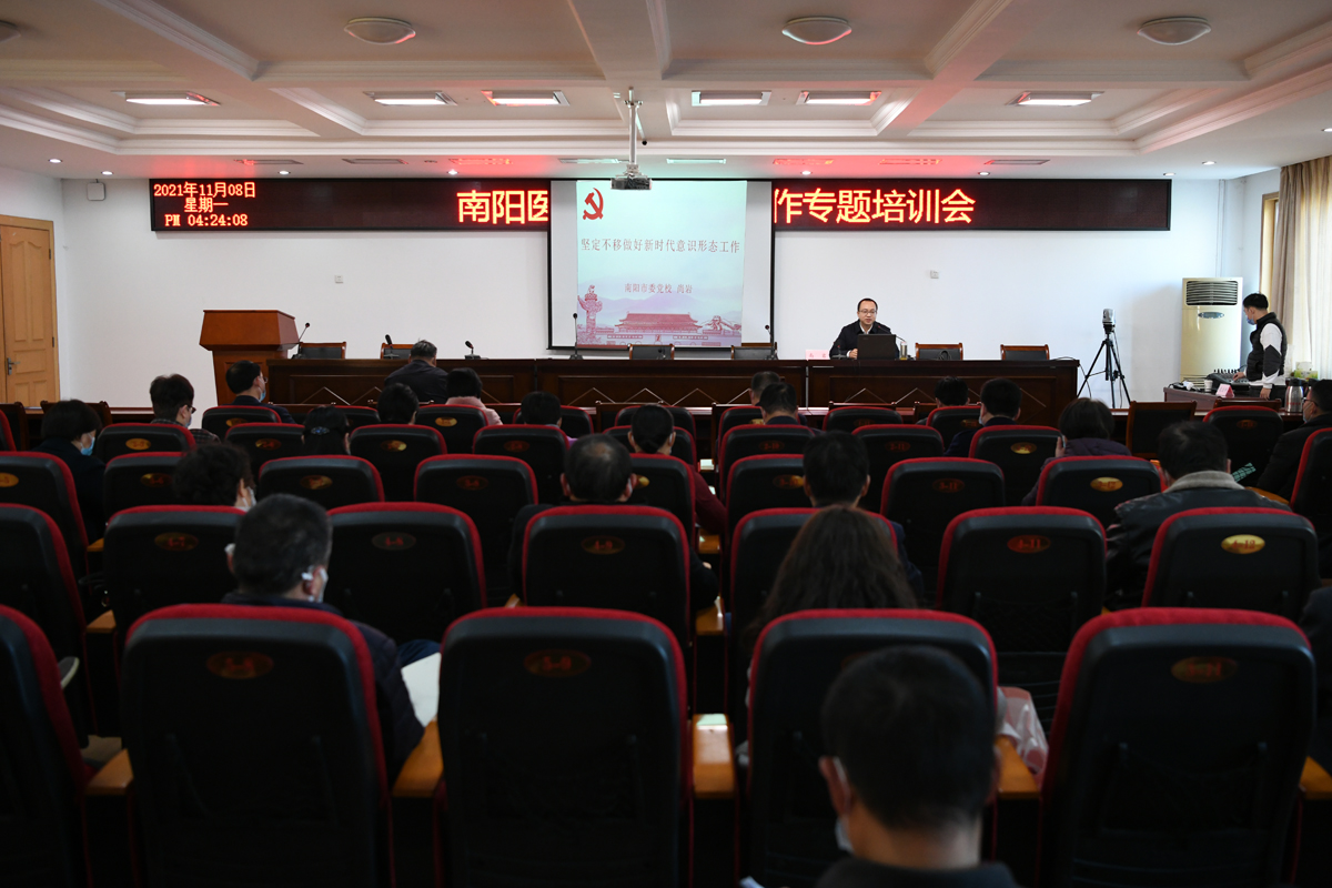 本网讯(文/宣传部 张旭斌)11月8日下午,我校在一号行政楼五楼会议室召开意识形态工作专题培训会。学校特邀市委党校尚岩老师主讲。学校中层正职、主持工作副职,学工办主任,学管党支部书记,思政课专兼职教师参加培训学习。培训会由党委副书记逵应坤主持。