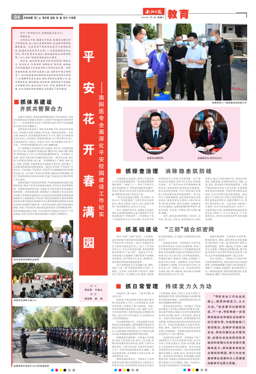本网讯(文/保卫处 张明立)近日,《南阳日报》以《平安花开春满园》为题,用整版篇幅对我校全面深化平安校园建设工作做了专题报道,对我校以平安建设四个抓手为主线所取得的成绩给予充分肯定。