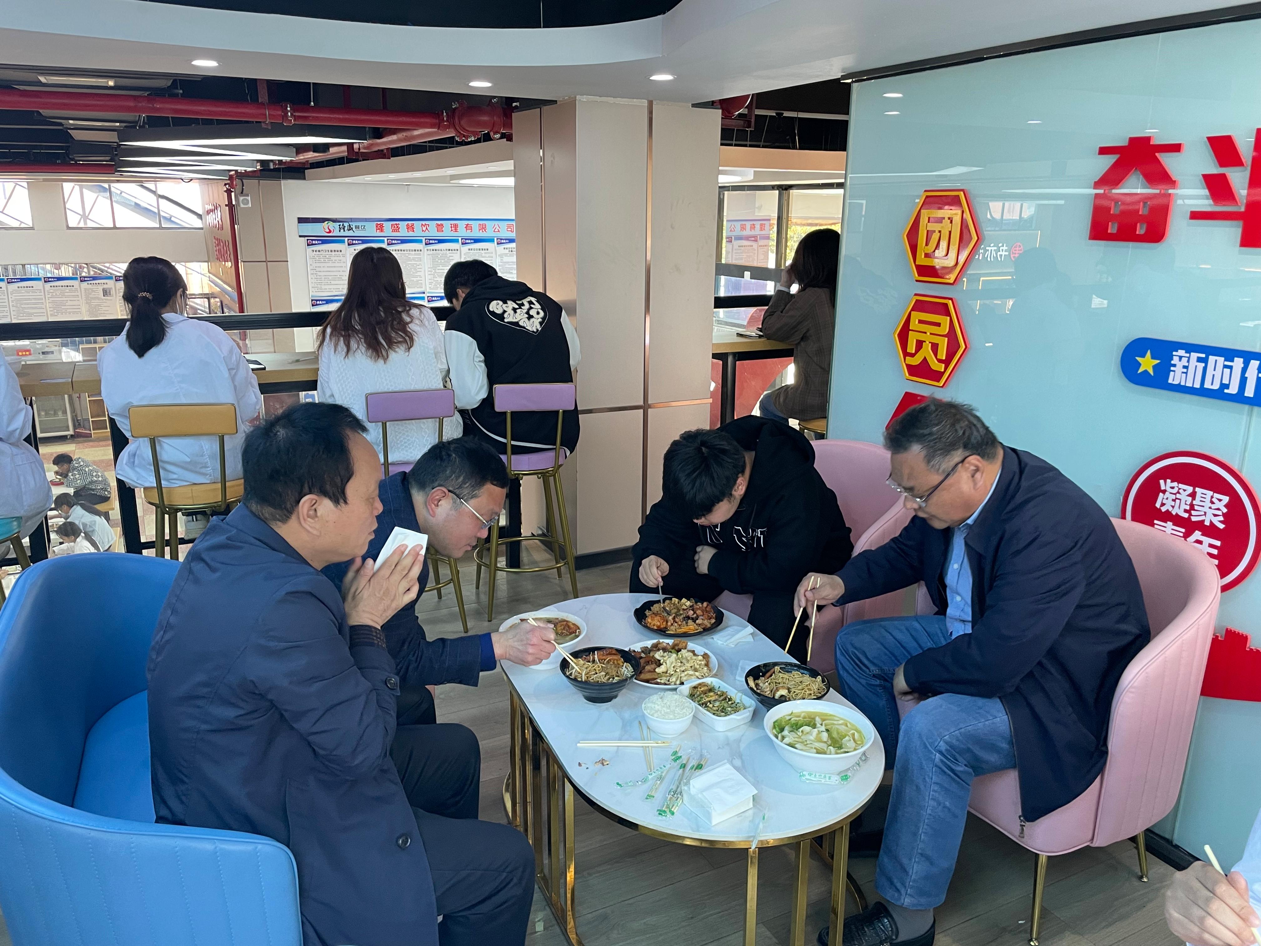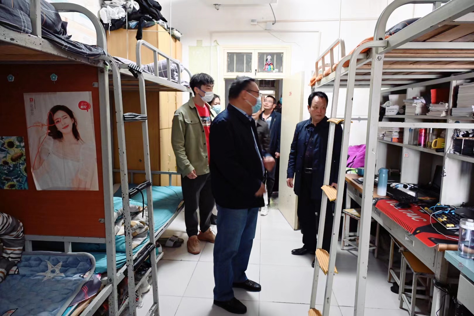 逵书记副书记对疫情防控期间的公寓安全卫生、网格化管理、早午晚测温和辅导员住寝等情况进行了解,并对公寓的规范用电、疏散通道、消防设施等重点内容进行检查。叮嘱辅导员要认真落实住寝制度,把值班室建成学生信息反馈、思想沟通的温馨家园,及时了解和发现学生的诉求和困难,做好常态化疫情防控下学生教育、管理和心理疏导工作,避免因为“闭环”管理出现心理危机。宿舍调研结束,逵应坤一行前往隆盛印象学生餐厅,与联系班级的贫困学生一起就餐,和同学们及食堂管理人员进行了深入交流,详细了解饭菜价格、服务态度、食品安全等方面的问题,要求食堂管理人员要以生为本,把学生健康成长放在第一位。逵应坤还对学生们的疑虑和问题进行了解答。