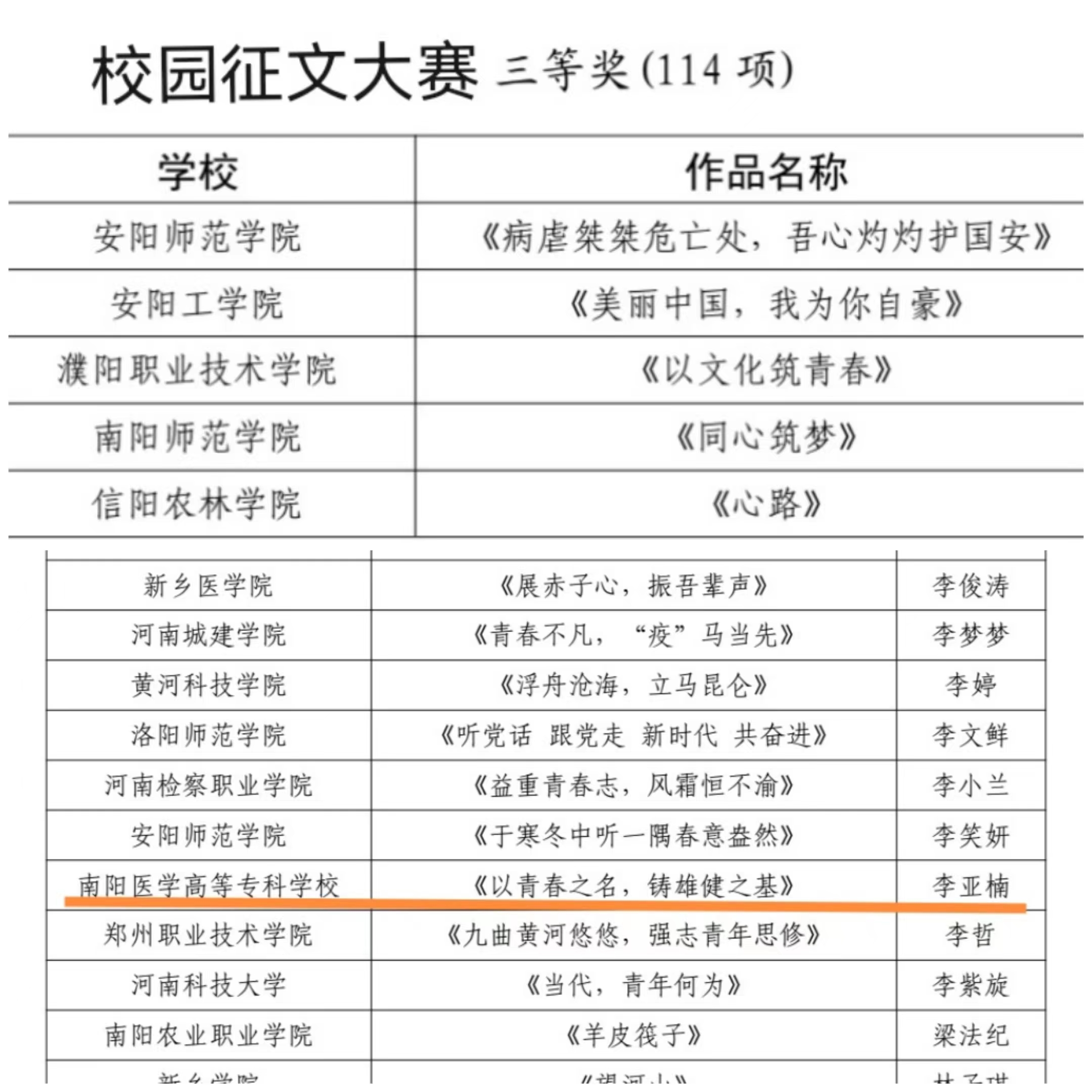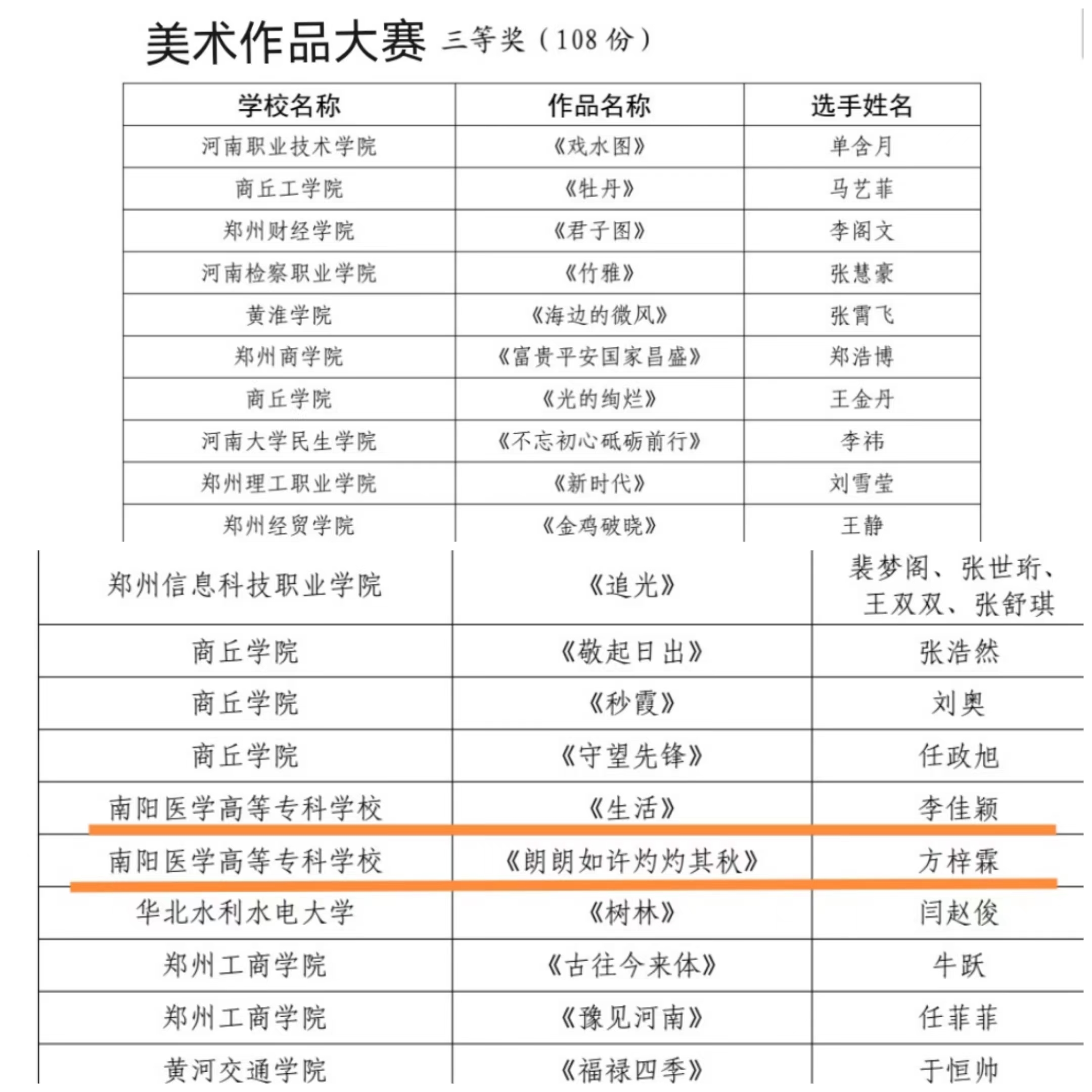 河南省第十七届大学生网上科技文化艺术节南阳医专获奖名单