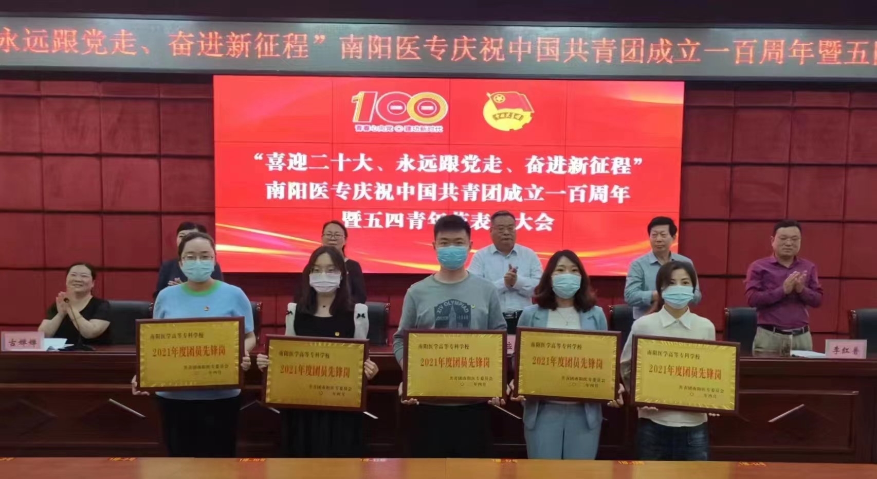 本网讯(文/校团委 庞博)2022年5月4日下午,校团委在图书馆五楼学术报告厅成功举办“喜迎二十大、永远跟党走、奋进新征程”南阳医专庆祝中国共青团成立一百周年暨五四青年节表彰大会。校党委副书记逵应坤,校党政办主任江学法,党委组织部部长杜晓平,党委宣传部部长李红普,党委学工部部长、校学生处处长梁顺平,校团委书记徐晓杰,以及各个系(部、院)团总支书记和全校团员代表参议会议。会议由校团委副书记古婵婵主持。