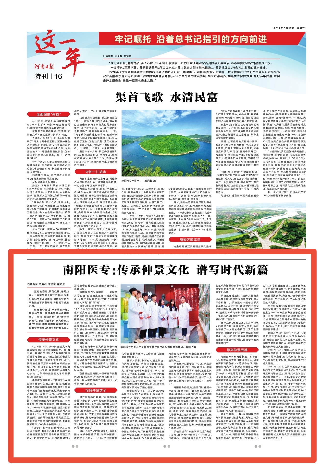 本网讯(文/宣传部 张旭斌)5月13日,《河南日报》特刊“这一年——牢记嘱托 沿着总书记指引的方向前进 ”以《南阳医专:传承仲景文化 谱写时代新篇》为题,刊发了我校这一年来认真学习贯彻习近平总书记重要讲话重要指示精神,以崇高的使命感、强烈的责任感、时不我待的紧迫感将总书记殷殷嘱托转化为强大动力,打响“传承仲景文化、培育仲景人才、擦亮仲景品牌”三张牌,振兴南阳医学教育,做强学校特色专业,助力区域经济发展,奋力书写仲景文化时代新篇,以高质量跨越式发展的优异成绩迎接党的二十大胜利召开!(编审 李红普)