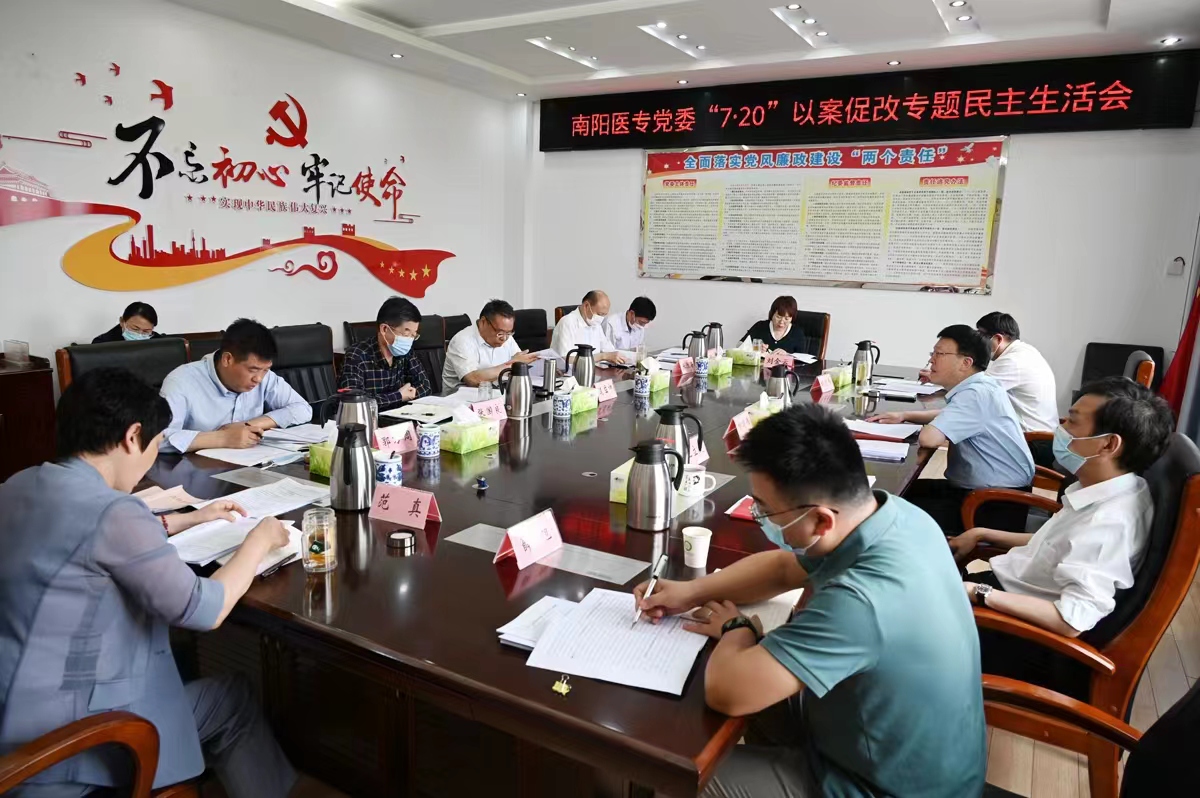 本网讯(文/党委组织部 邢富斌)5月25日下午,南阳医专党委领导班子召开郑州“7·20”特大暴雨灾害追责问责案件以案促改专题民主生活会。南阳市纪委、监委驻市卫健体委纪检监察组到会指导,校党委书记柳明伟主持会议并讲话,校党委班子成员参加会议,校“7·20”以案促改领导小组专班主要负责同志列席会议。