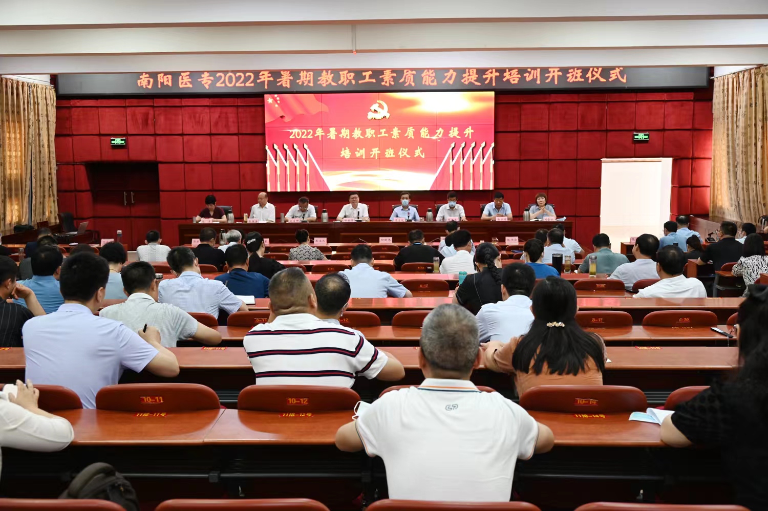 本网讯(文/党政办公室 王馨慧)6月23日上午,学校在仲景西区图书馆5楼学术报告厅举行2022年暑期教职工素质能力提升培训开班仪式。学校领导班子成员出席开班仪式,校本部中层正副职干部及基层党支部书记参加培训。会议由党委副书记、校长王立义主持,逵应坤传达《南阳医专2022年暑期教职工素质能力提升培训方案》,党委书记柳明伟就暑期培训作动员讲话。