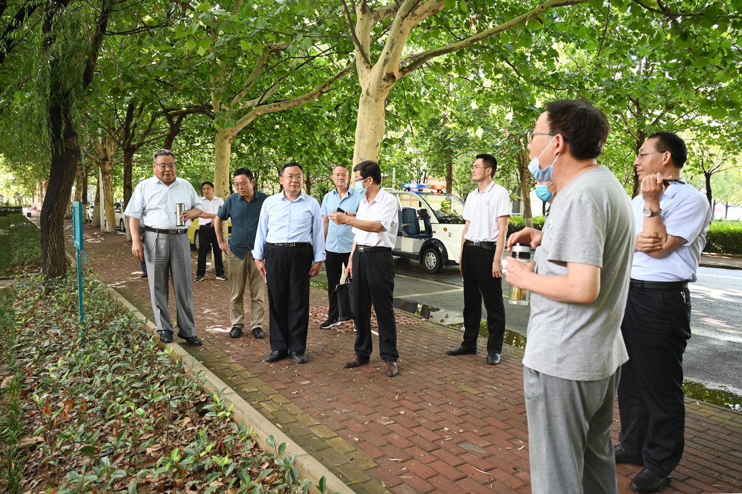 培训会后,逵应坤、张国良带领党政办、宣传部、纪委、总务处、保卫处、生活服务中心等部门负责人陪同张春晓实地考察了校园环境,张春晓对我校校园文化、绿化美化等方面给予了充分肯定,同时对存在的问题与不足提出了改进建议,特别指出要围绕医学文化、突出仲景精神、彰显校园特色。针对问题与不足,校领导即时提出整改意见,要求各相关部门及时制订整改工作方案与措施,充分利用暑假时间,做好各项创建提升工作。(编审/李红普 摄影/程安琪)