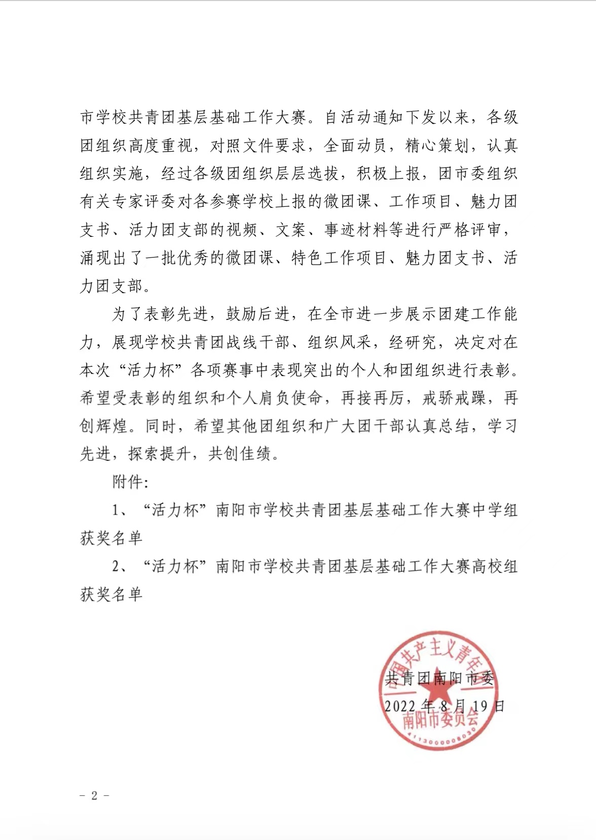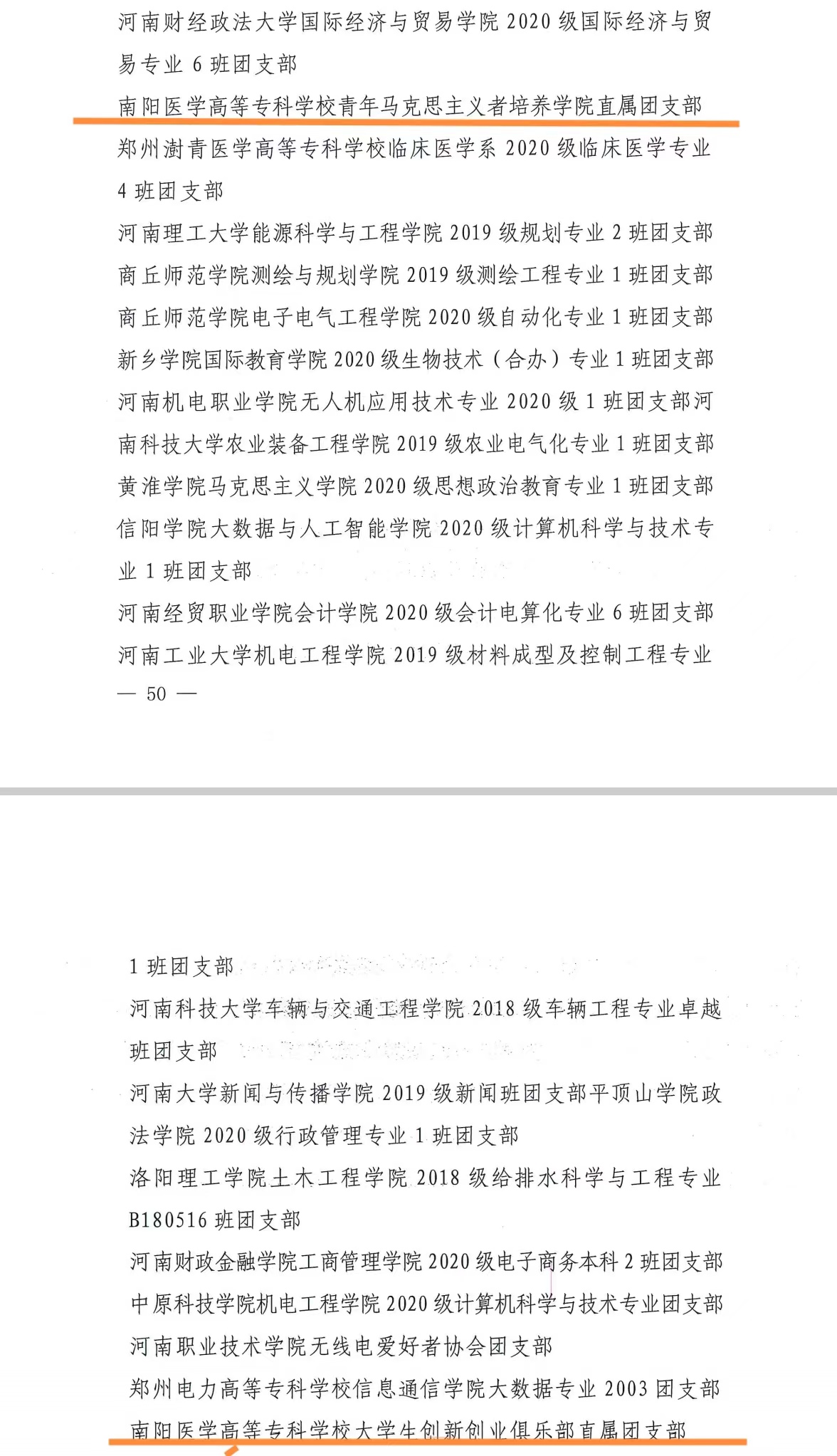 本网讯(文/校团委 马黎莉)近日,共青团河南省委下发了《关于发布2022年度“活力杯”河南省学校共青团基层基础工作大赛获奖名单的通知》(豫青字[2022]26号),共青团南阳市委下发了《关于发布2022年度“活力杯”南阳市学校共青团基层基础工作大赛获奖名单的通知》(宛青发[2022]16号)。我校在省、市两级大赛中喜获佳绩:南阳医专2021年度青年马克思主义者培养学院直属团支部、南阳医专大学生创新创业俱乐部社团直属团支部分别荣获河南省百优“活力团支部”。在市级比赛中,我校荣获共青团工作项目二等奖等12个奖项。