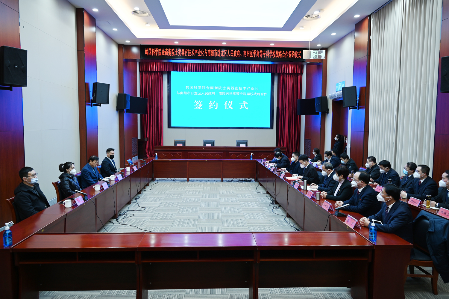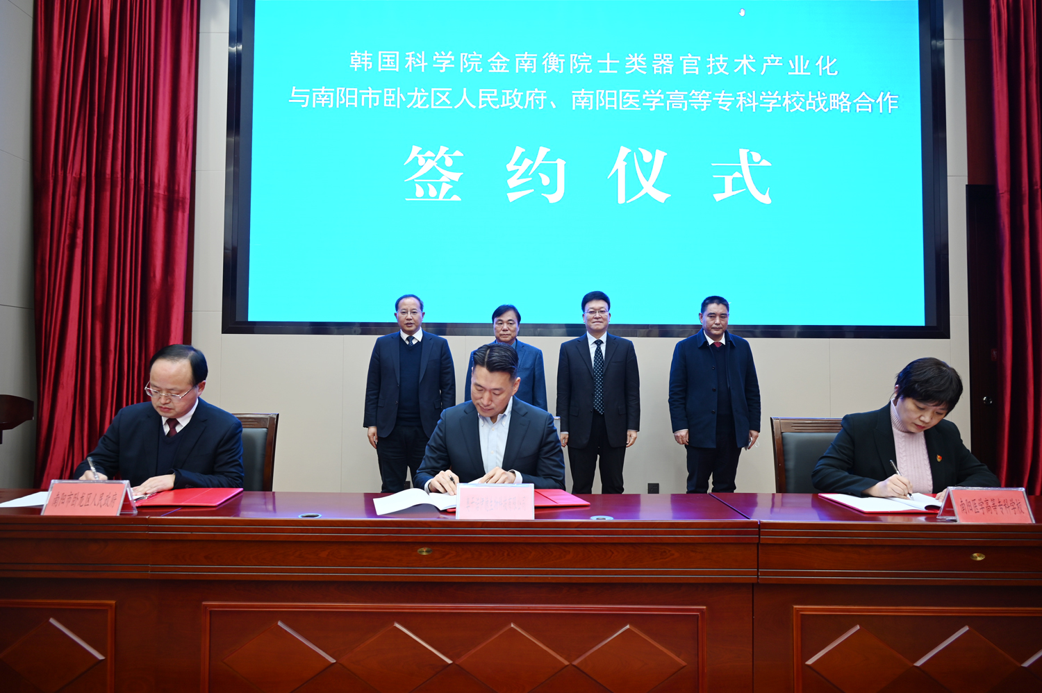 本网讯(文/宣传部 程安琪)12月29日下午,我校与韩国科学技术翰林院金南衡院士类器官技术产业化项目团队战略合作签约仪式在卧龙区委会议中心第二会议室举行。仪式上,由金南衡院士领衔的广东省奥干诺伊德生物科技有限公司分别与卧龙区、博鱼官方网站,博鱼BOYU(中国)签订了一系列产学研战略合作协议。