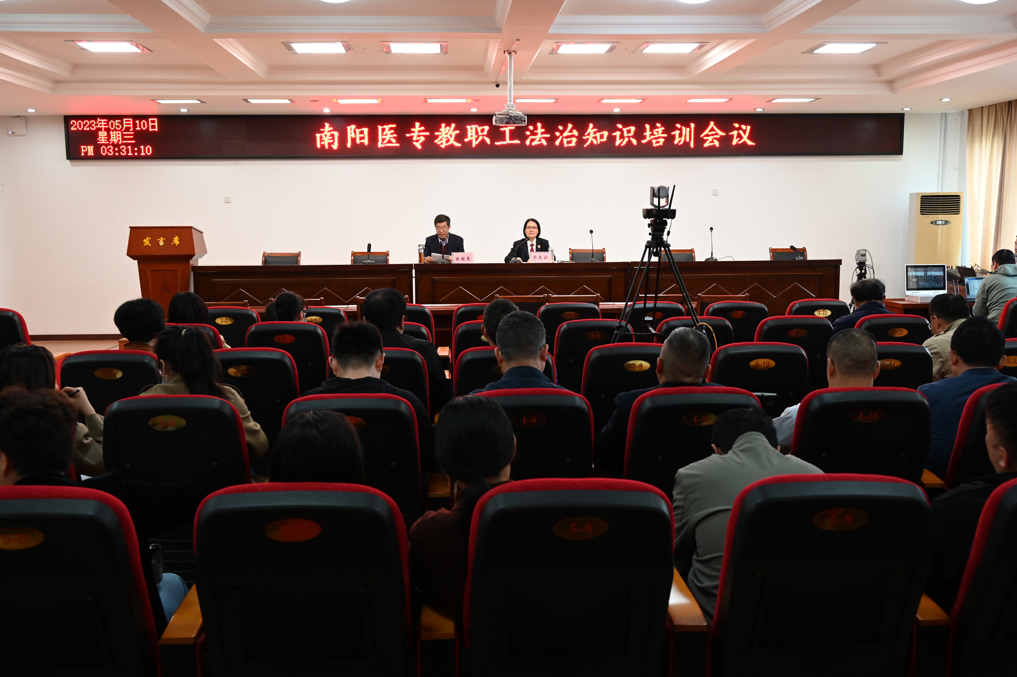 本网讯(文/法制办公室 刘一凡)为了贯彻落实国家安全教育文件精神,巩固精神文明和平安建设成果,提高广大教职工法治意识和素养,5月10日,我校在行政楼五楼会议室举办教职工法治知识培训会。学校各部门负责人、系(部、院)书记、校本部40岁以下的正科级和35岁以下的副科级干部参加会议,其他教职员工通过钉钉参加了线上会议。校党委委员、副校长张国良主持会议。
