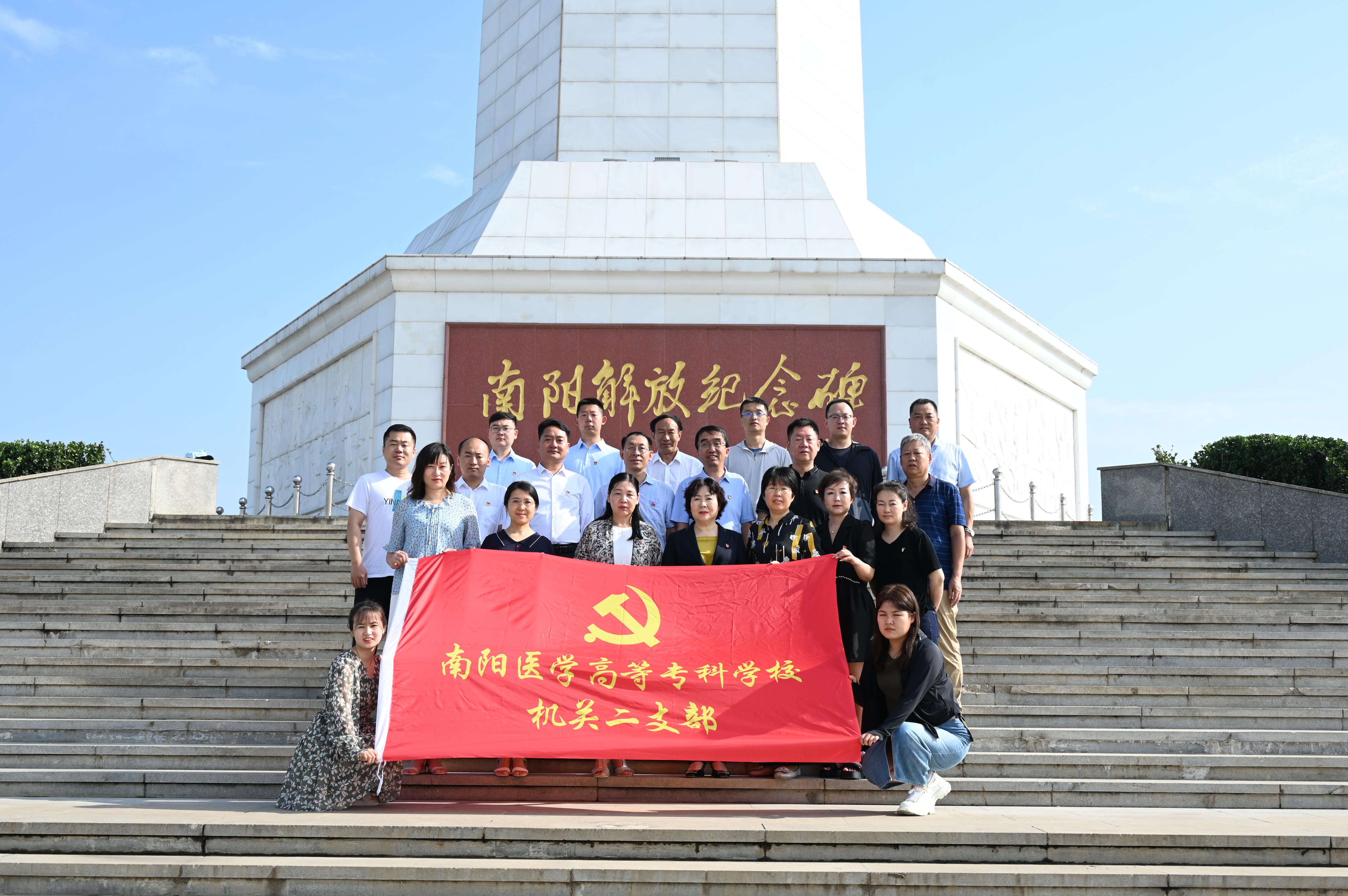 本网讯(文/人事处 李建效)6月30日上午,机关二支部全体党员怀着无比崇敬的心情来到南阳解放广场,开展重温入党誓词、瞻仰解放纪念碑主题党日活动,校党委委员、纪委书记刘金云参加活动。活动由支部书记孟晓红主持。