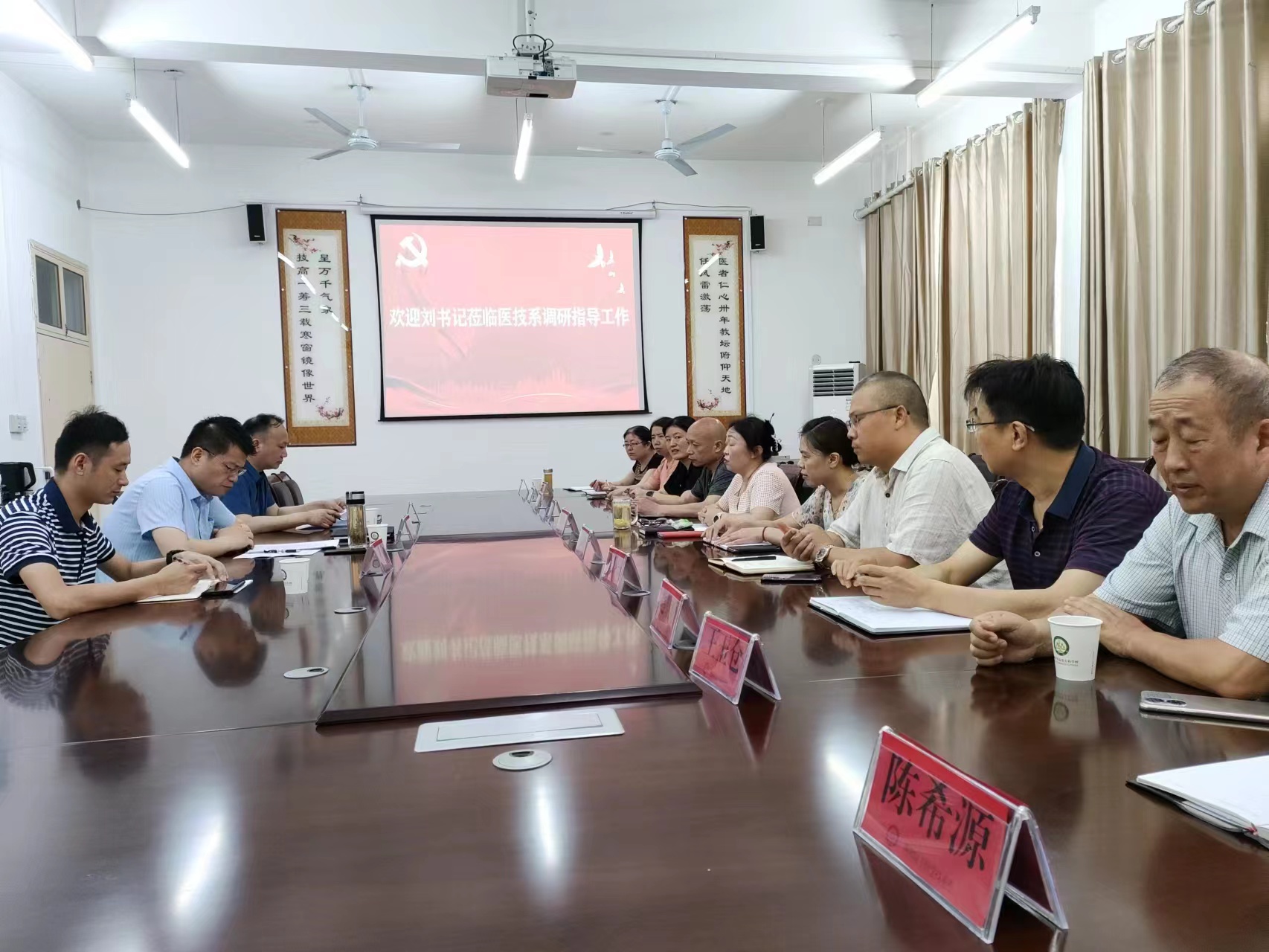 本网讯(文/医学技术系 倪立)7月4日,校党委副书记刘涛深入医学技术系调研指导工作。党政办相关人员,医技系班子成员,科以上人员参加了会议。
