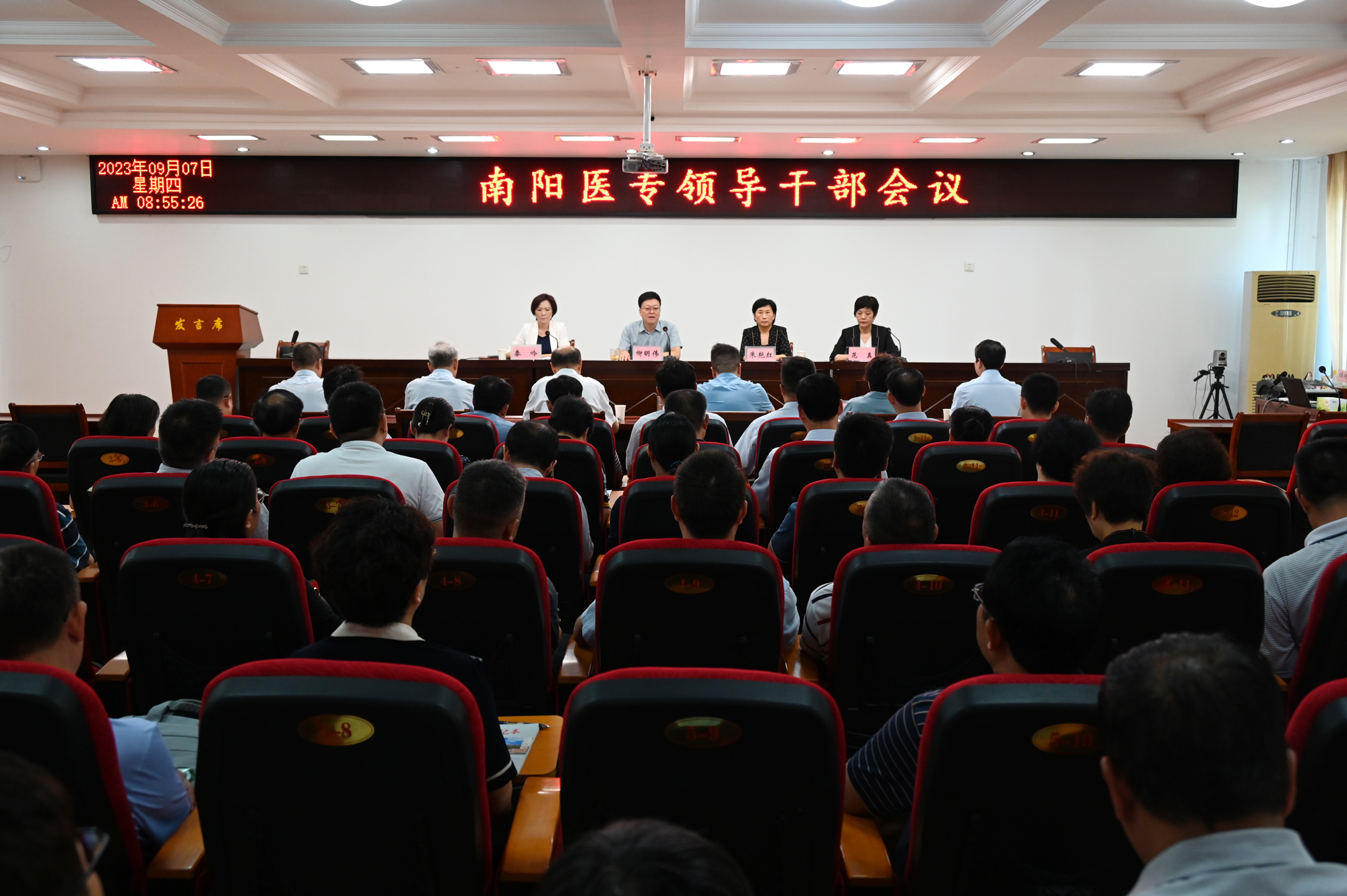 本网讯(文/组织部 张端)9月7日上午,学校在行政楼5楼会议室召开领导干部会议,传达省委、市委的任职决定。市委组织部副部长朱艳红、干部四科科长秦岭,学校领导班子成员、校本部中层正职干部、三所附属医院主要负责同志参加会议。会议由党委书记柳明伟主持。