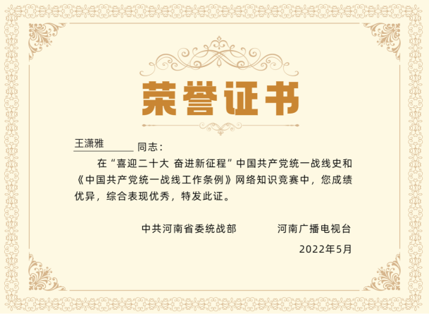 《中国共产党统一战线工作条例》知识竞赛优秀奖 |