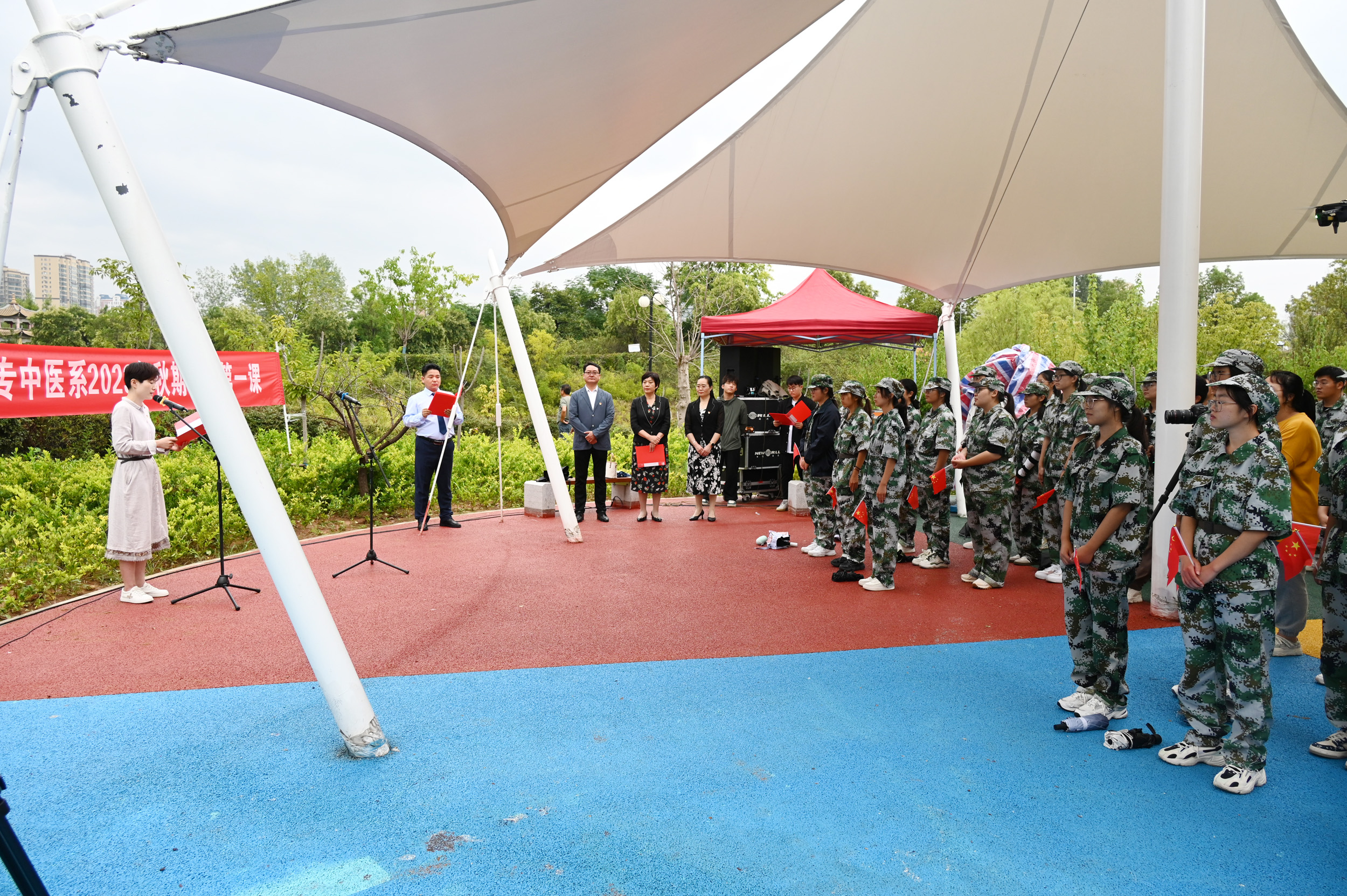 本网讯(中医系 刘元)2023年9月27日下午,南阳医专中医系2023年秋期开学第一课在仲景东区隆重举行。校长范真、宣传部部长李红普、中医系书记郭玉伟、主任张明丽与中医系全体师生齐聚仲景湖畔,同上一堂“沉浸式”思政大课。