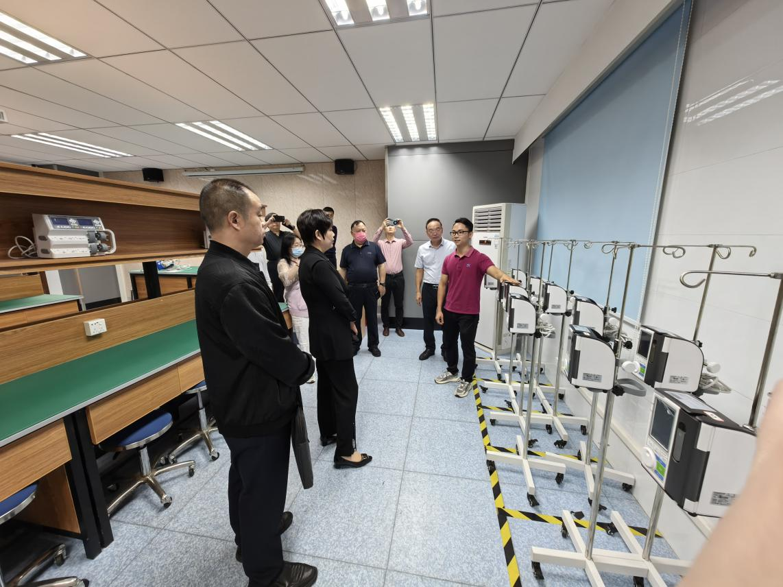 在广东德鑫医疗科技有限公司,范真实地考察公司旗下的合作医院及东莞理工学校的医疗器械产学研基地,详细了解企业的发展情况及人才需求情况,与德鑫医疗董事长吴勤仲就定向招生培养医疗器械运维人才、成立产业学院、校企合作开发课程、社会培训、技能考证、推进医疗装备运维行业产教融合共同体成立事宜进行了深入交谈。在广州骏丰频谱有限责任公司,范真实地考察公司总部、旗下明心康复医院、80亩自有产业园并召开座谈会,就下一步学生就业、订单培养、心理健康教育等方面和企业达成了初步意向。