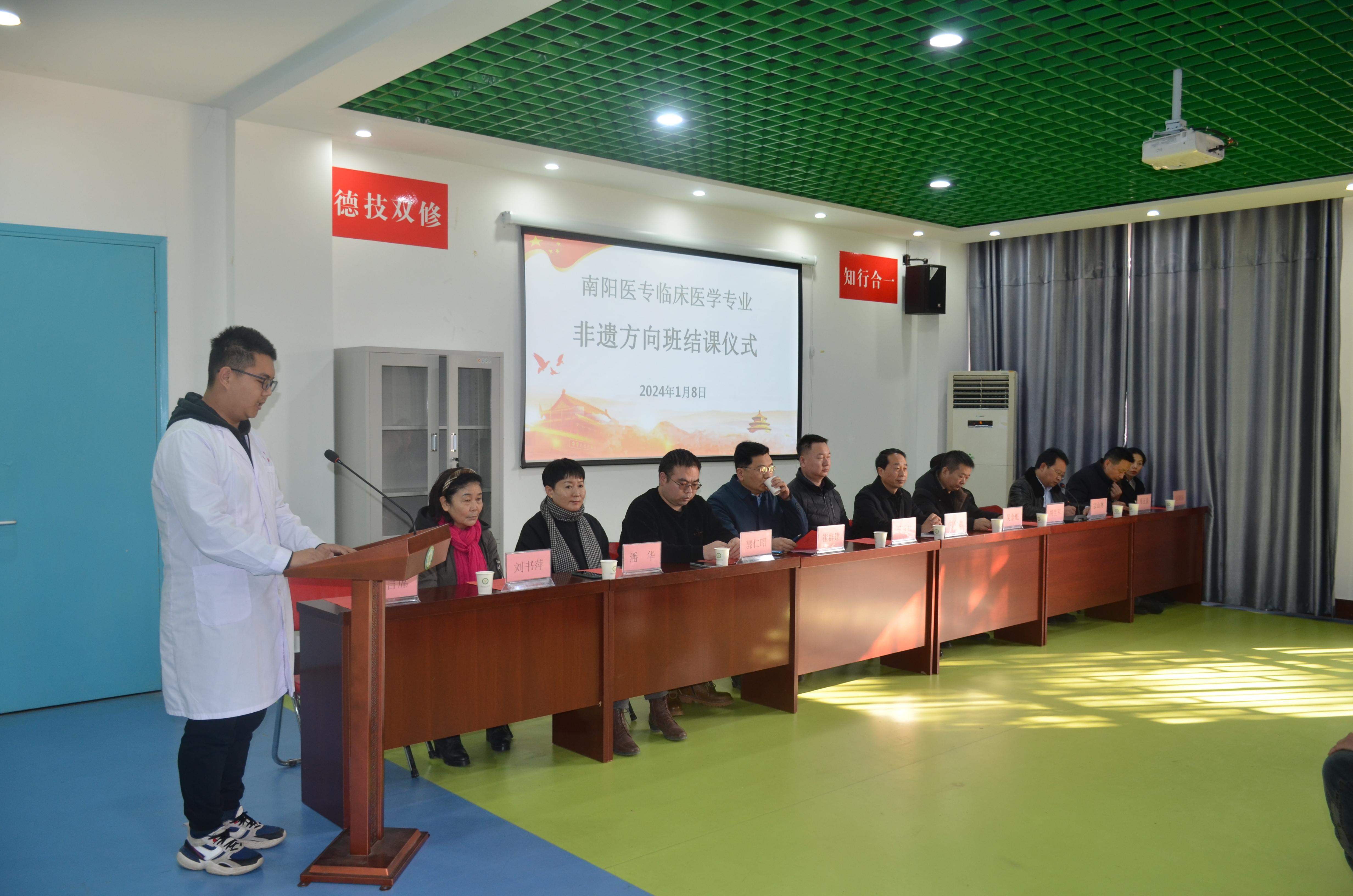 副校长刘荣志作总结讲话。他指出,学校实施“非遗聚火”工程,致力“传承仲景文化、培育仲景学子、擦亮仲景品牌”,有力推动非遗传承创新发展,为基层培养高素质实用型人才。临床医学系开设的非遗方向班,是贯彻落实学校“非遗五进”的具体行动,人才培养方案修订、课程设置、宣传动员、教学管理、社会服务等方面工作都很到位。学生学习积极性高,技能学到手,能够拿出手,传承传统技艺,也提高了就业的能力。刘荣志强调,要按照职业教育改革的新要求,进一步探索非遗教学科研新模式,推进非遗“三融”,为非遗传承创新和培养高质量医学人才做出更大贡献。