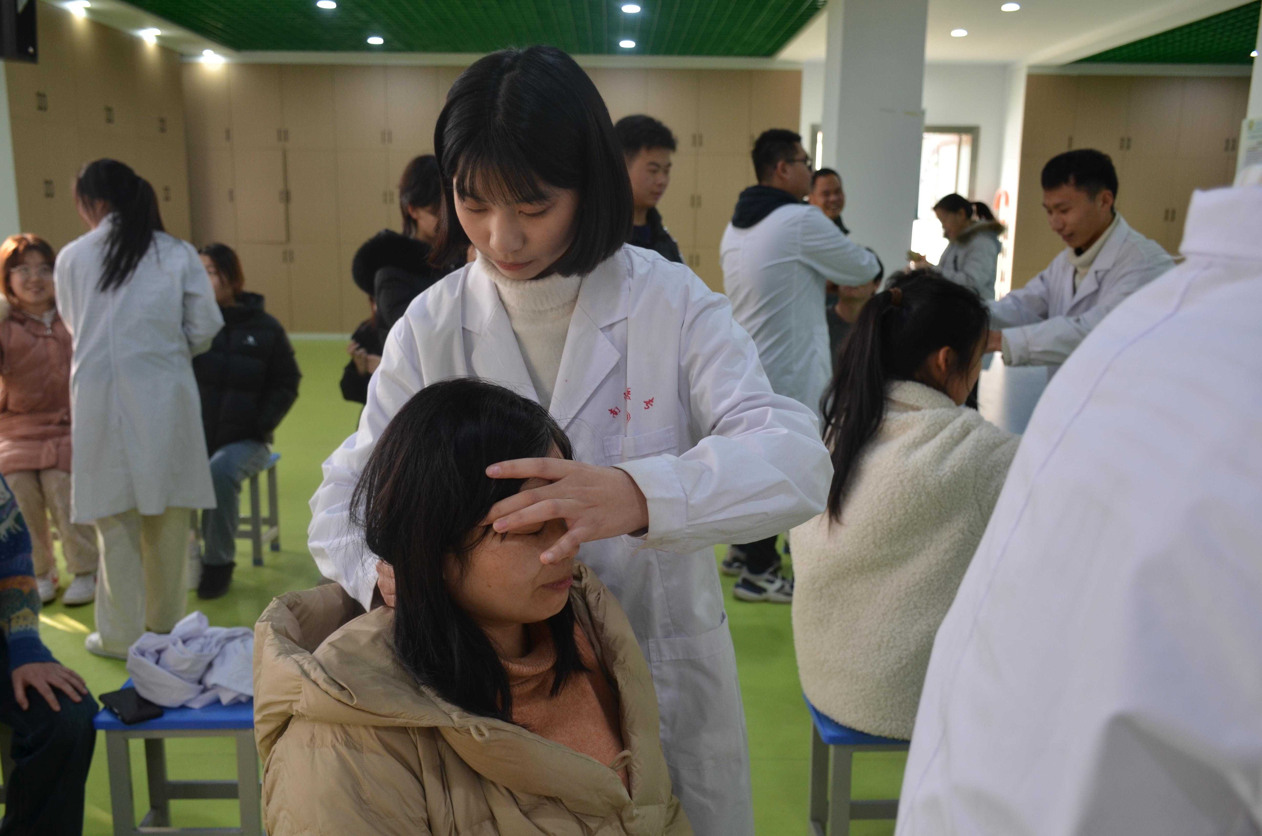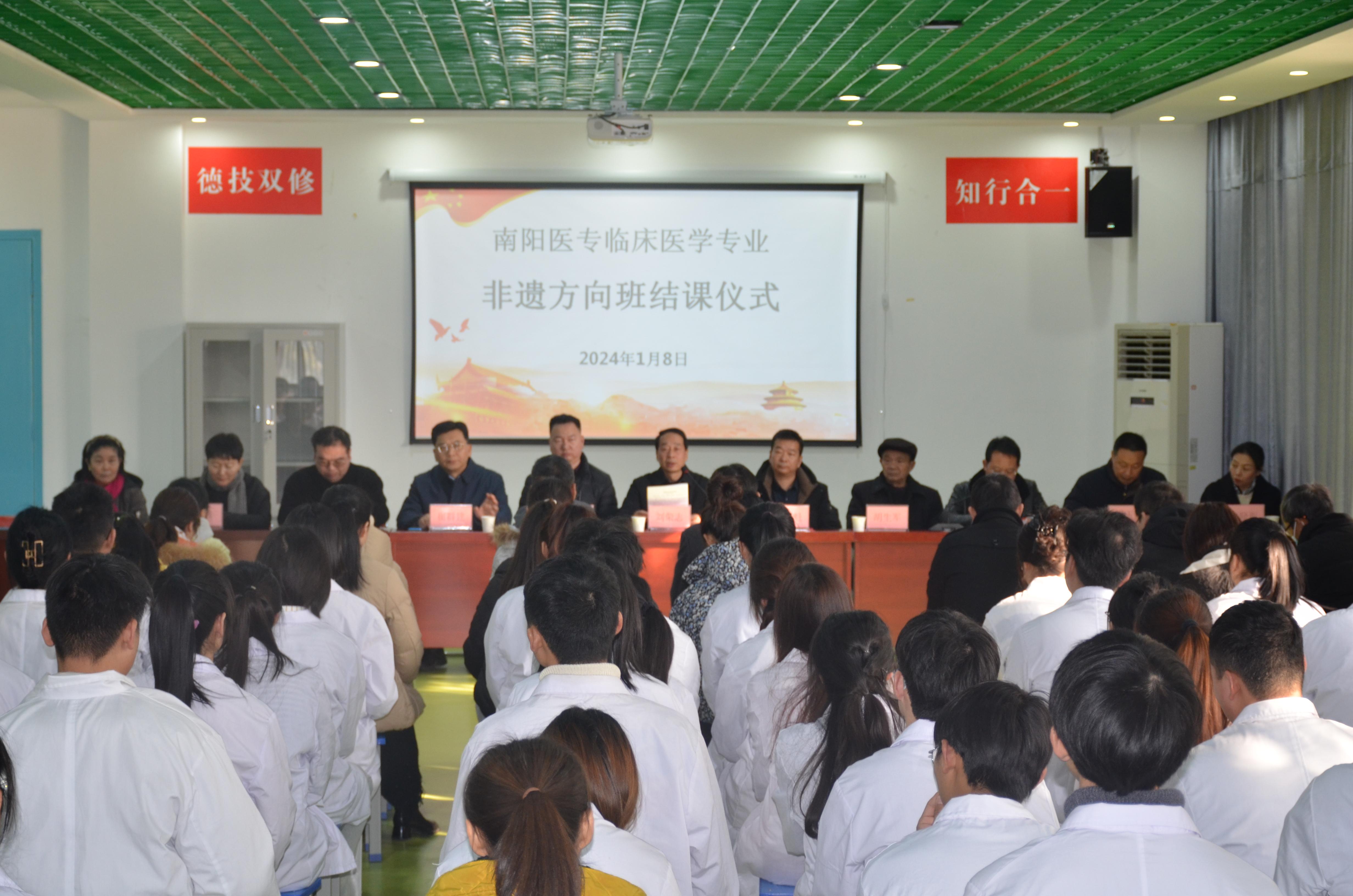 本网讯(文/临床医学系 侯萍)1月8日下午,临床医学系非遗方向班结课仪式在临床医学模拟中心举办。校党委委员、副校长刘荣志,“张氏经络收放疗法”新乡牧业经络收放医院院长吴金魁,新乡德中康职业培训学校校长王玉林,“胡氏捻筋法”第三代传人胡胜军,教务处副处长周玉金,针灸骨伤系副主任潘华,中医系副主任张晓丽,临床医学系领导班子和师生代表,以及非遗方向班全体学员参加。结课仪式由临床医学系党总支书记宗山林主持。