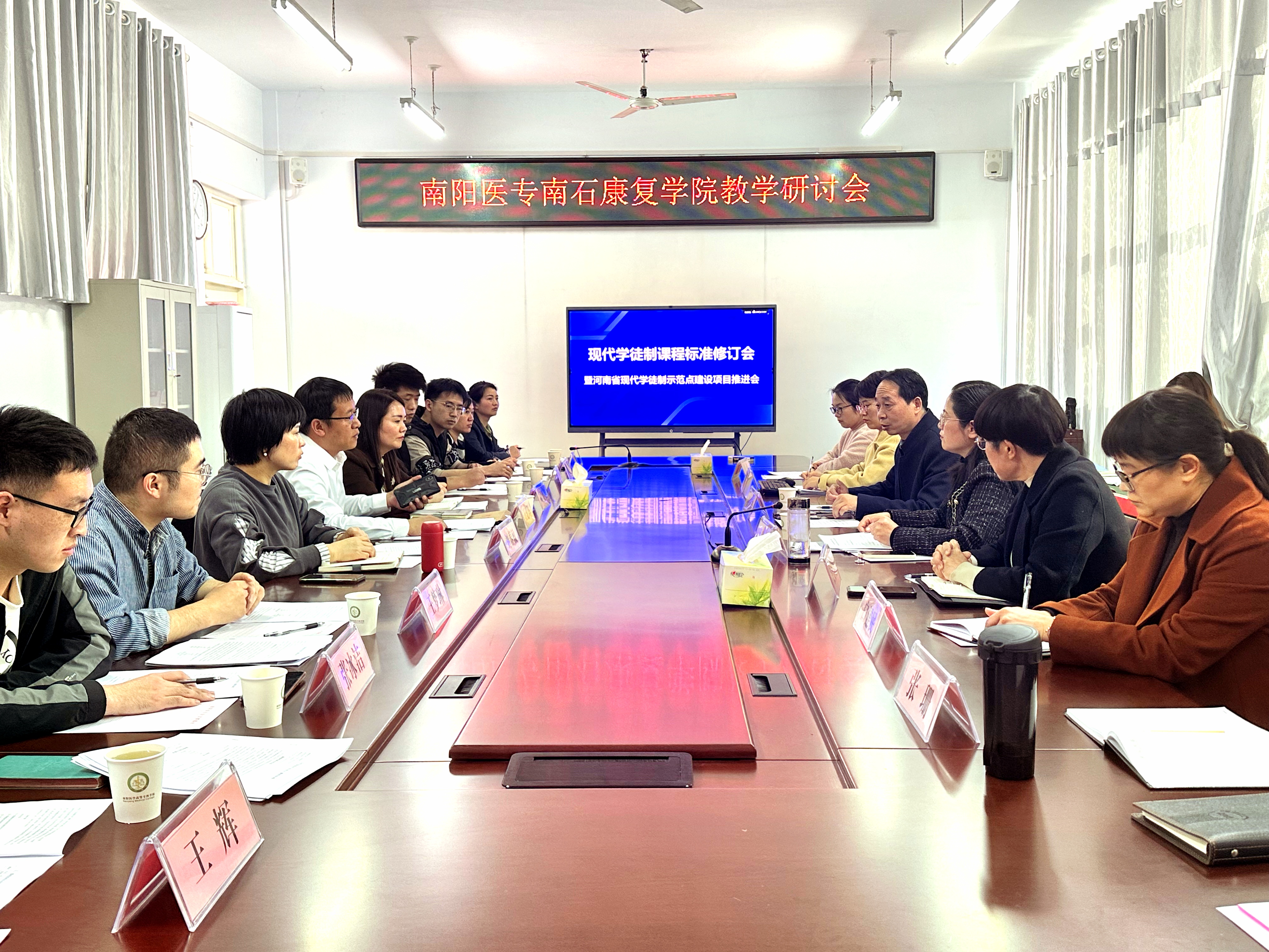 本网讯(文/康复医学系 张珊)为进一步深化校企合作、产教融合,推进河南省现代学徒制示范点项目建设,3月20日下午在仲景西区1号教学楼4楼会议室召开了南阳医专南石康复学院现代学徒制课程标准修订研讨会暨现代学徒制示范点建设推进会。副校长刘荣志,南石康复中医院院长王建晖、副院长刘明伟、康复科主任刘春敏,南石康复学院的教学团队和康复医学系专业课教师参加了会议。康复医学系主任张欣主持会议。