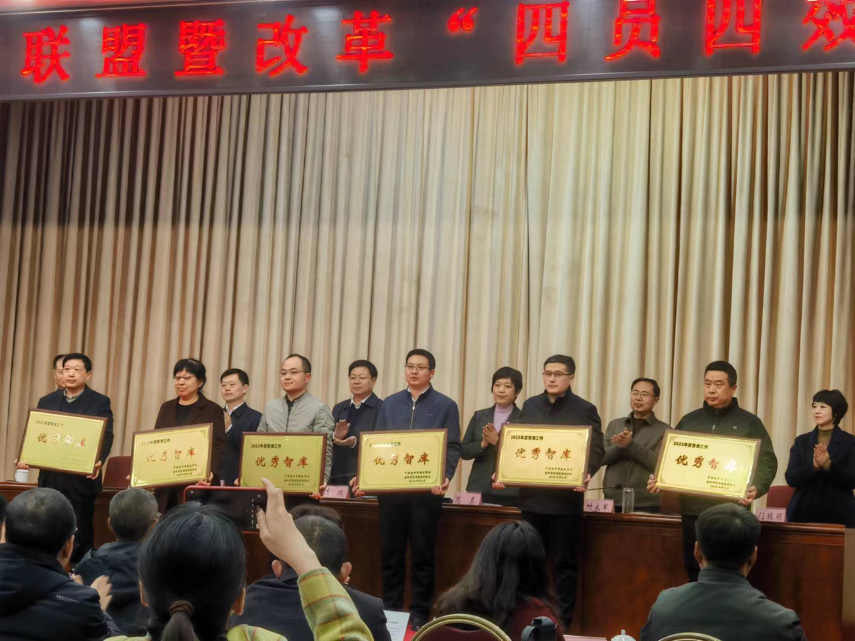 本网讯(文/科研处 赵晴)近日,南阳市智库联盟暨改革”四员四效” 工作会议召开,校长范真作为联盟理事单位负责人出席会议并为获奖单位与个人颁奖。会议对6家优秀智库和45篇优秀研究成果及作者予以通报表扬,我校荣获优秀智库称号,我校党委书记柳明伟主持完成的《关于建设中医药文化传承中心的调研报告》、校长范真主持完成的《打造“南阳汉代大观苑”助力副中心城市建设》两项成果获得优秀研究成果一等奖,为市委提供了专业精准、真知灼见的咨政建议;校长范真主持完成的《做大做强南阳艾产业,打响“南阳艾”品牌》获得优秀研究成果二等奖,为南阳艾品牌建设和产业提质升级贡献了科技力量。