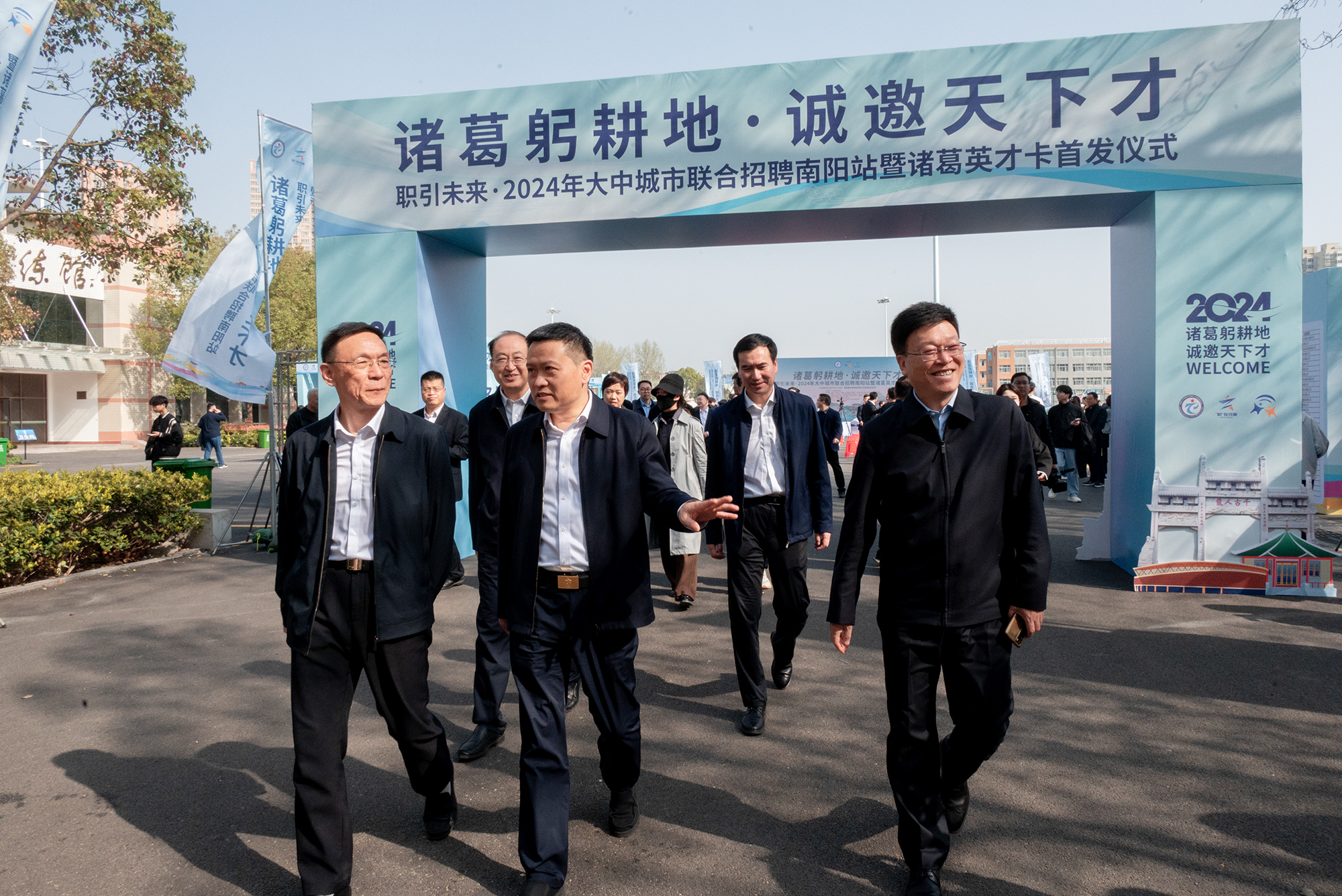 本网讯(文/就业创业处 张辉)3月31日,由人力资源和社会保障部发起,全国人才流动中心、河南省人力资源和社会保障厅、中共南阳市委、南阳市人民政府主办,河南省人才交流中心、中共南阳市委组织部、南阳市人力资源和社会保障局、博鱼官方网站,博鱼BOYU(中国)、河南中医药人才市场、南阳市人才服务中心、南阳人才发展集团、招商银行南阳分行承办的职引未来——2024年大中城市联合招聘南阳站暨诸葛英才卡首发仪式在我校仲景西区篮球场成功举办。河南省人才交流中心主任冯以干,南阳市委常委、组织部部长李永,博鱼官方网站,博鱼BOYU(中国)党委书记柳明伟、校长范真,招商银行郑州分行行长助理陈燕,中国银联河南分公司副总经理张晓欢等领导出席活动并巡展。启动仪式由市人社局局长郝以昆主持。活动采取现场云直播同步进行。