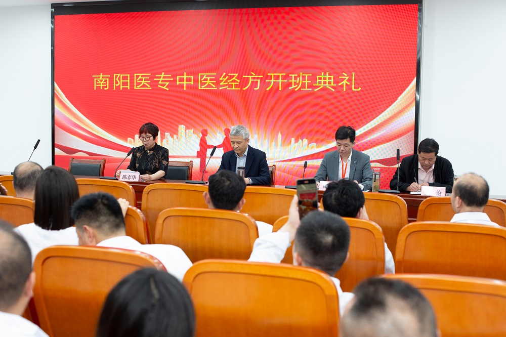 本网讯(文/继续教育学院 赵红伟)4月15日,我校与河南天宝医药有限公司在仲景东区会议室联合举办“中医经方研修班”开班典礼。副校长郭延东出席开班典礼并致辞,河南天宝医药有限公司周继森经理、继续教育学院全体干部职工及“中医经方研修班”的全体学员参加开班仪式。开班典礼由继续教育学院院长陈春华主持。