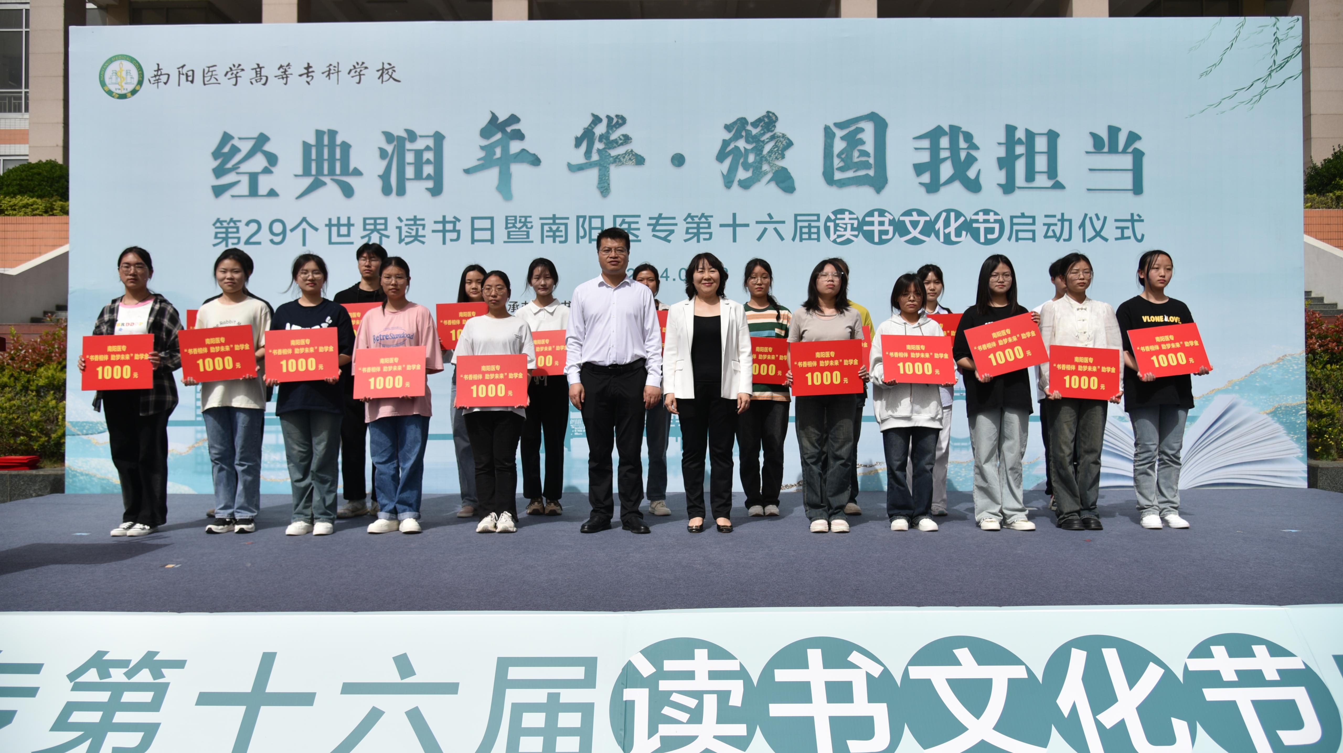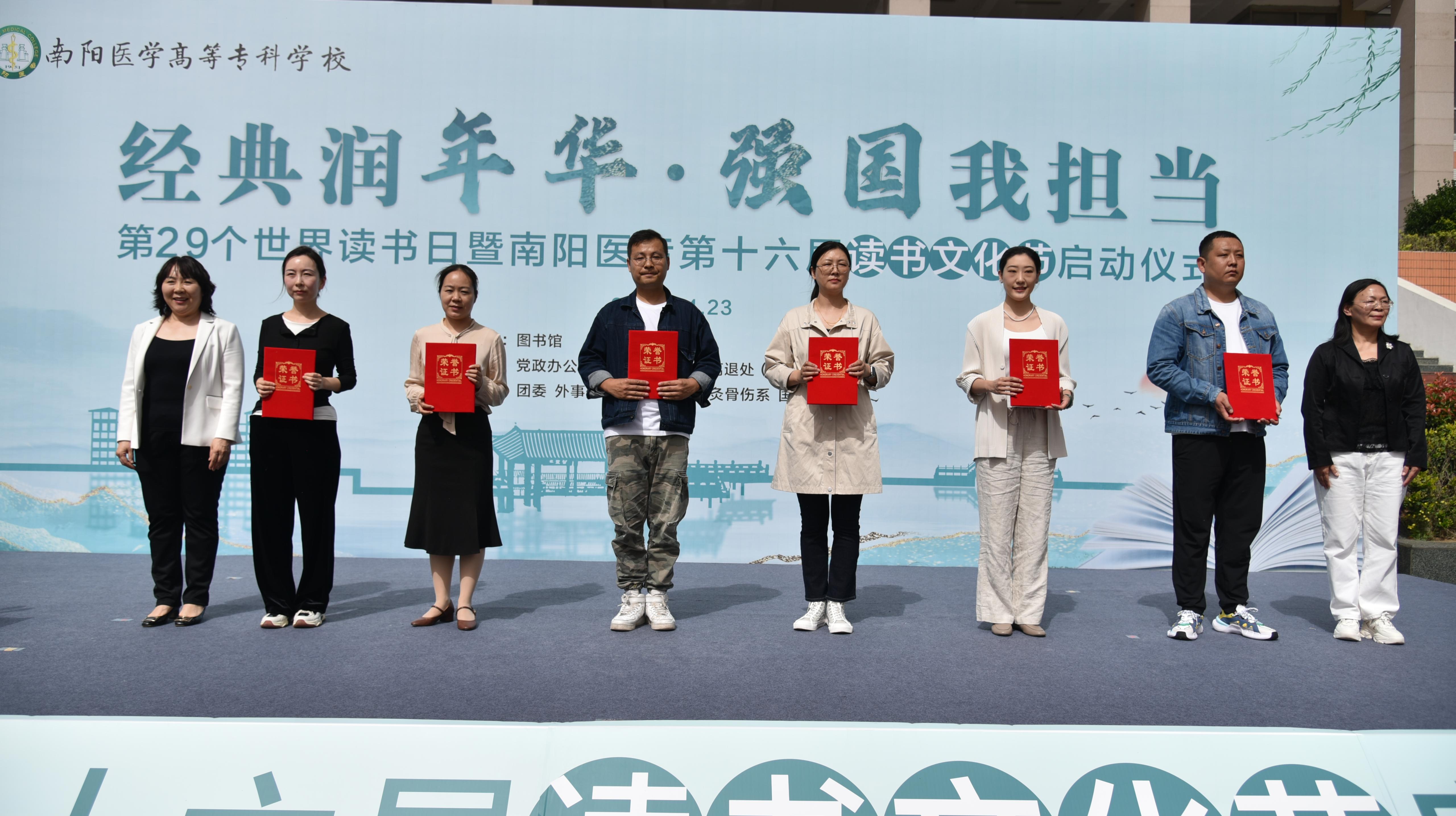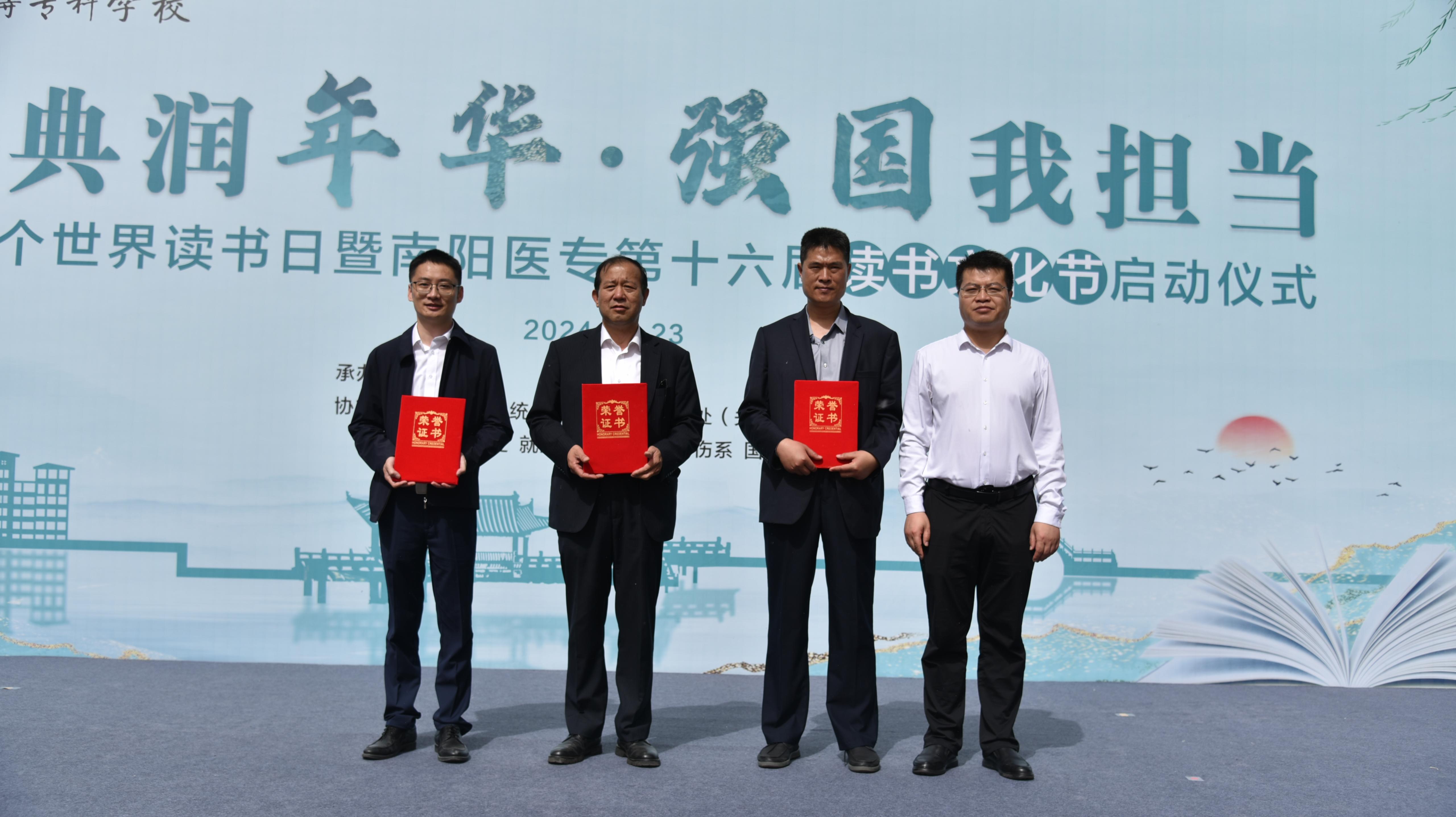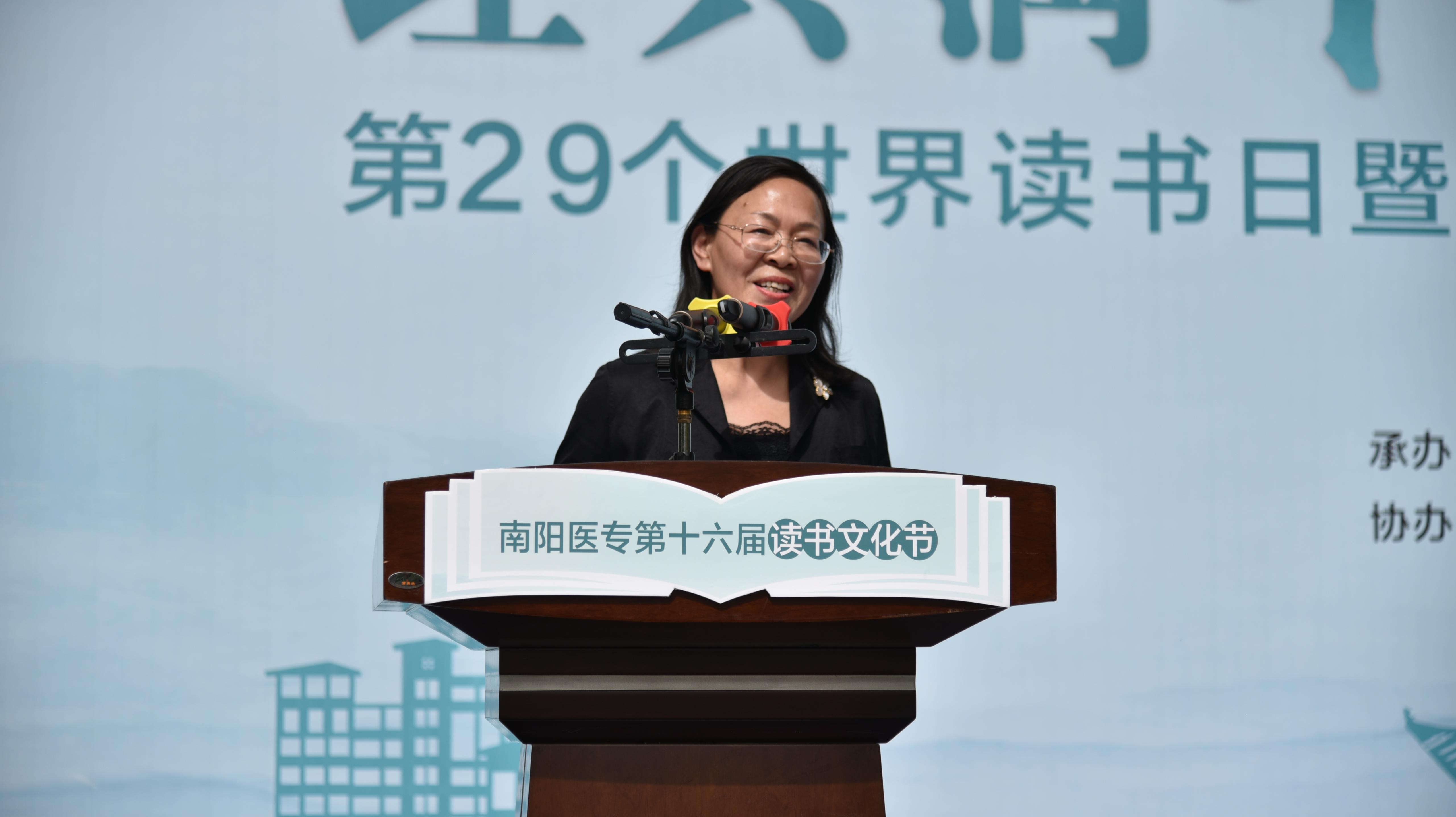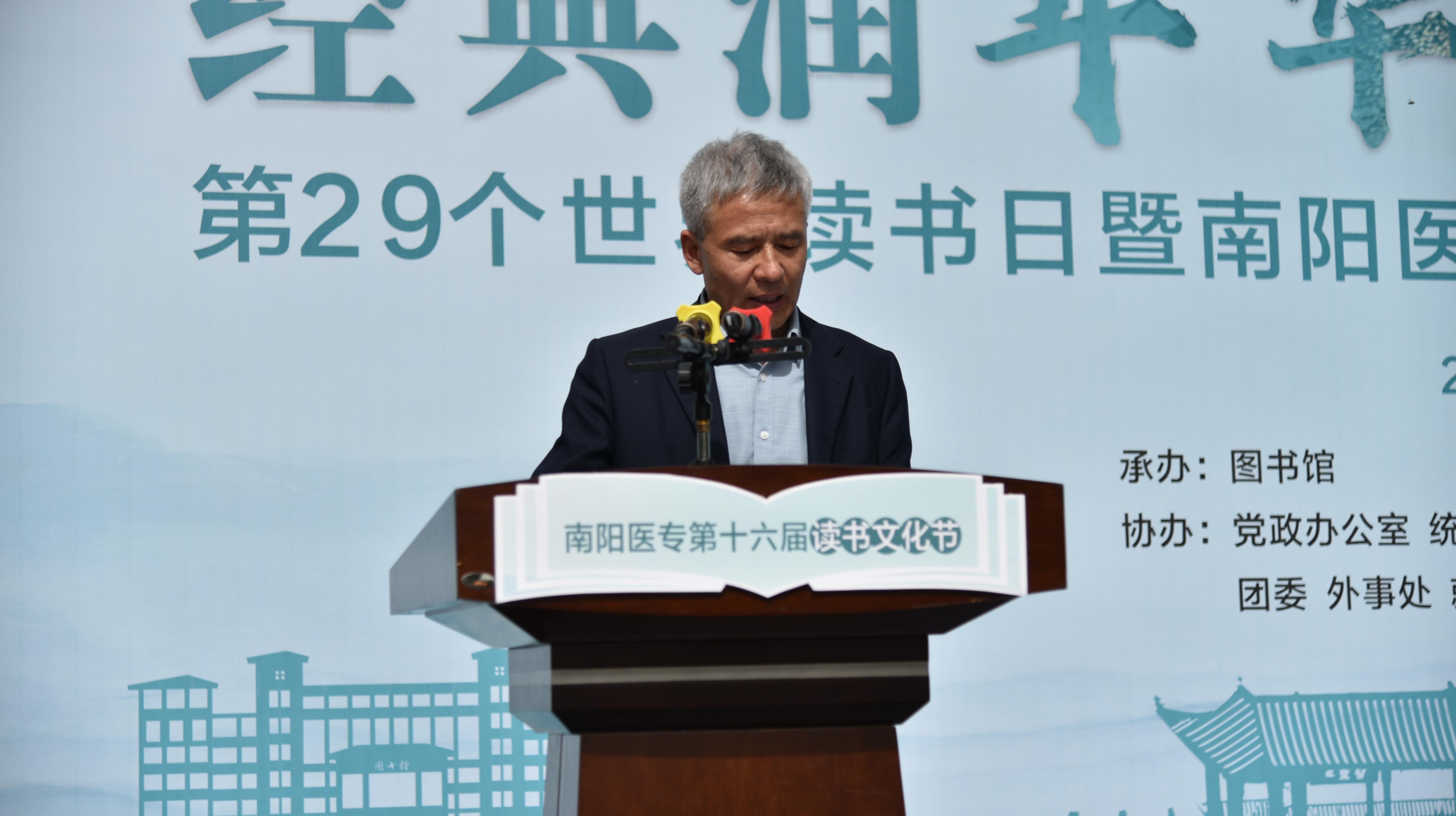 本网讯(文/图书馆 王佳)为深入学习贯彻习近平文化思想,落实党的二十大报告提出的“深化全民阅读活动”要求,庆祝第29个“世界读书日”,4月23日上午,以“经典润年华 强国我担当”为主题的南阳医专第十六届“读书文化节”启动仪式在仲景西区图书馆举行。校长范真、党委副书记刘涛、纪委书记刘金云、工会主席杜晓平,副校长郭延东、刘荣志、秦玖刚出席,各部门负责人及师生代表参加。启动仪式由郭延东主持。线上直播与线下活动同步开展。