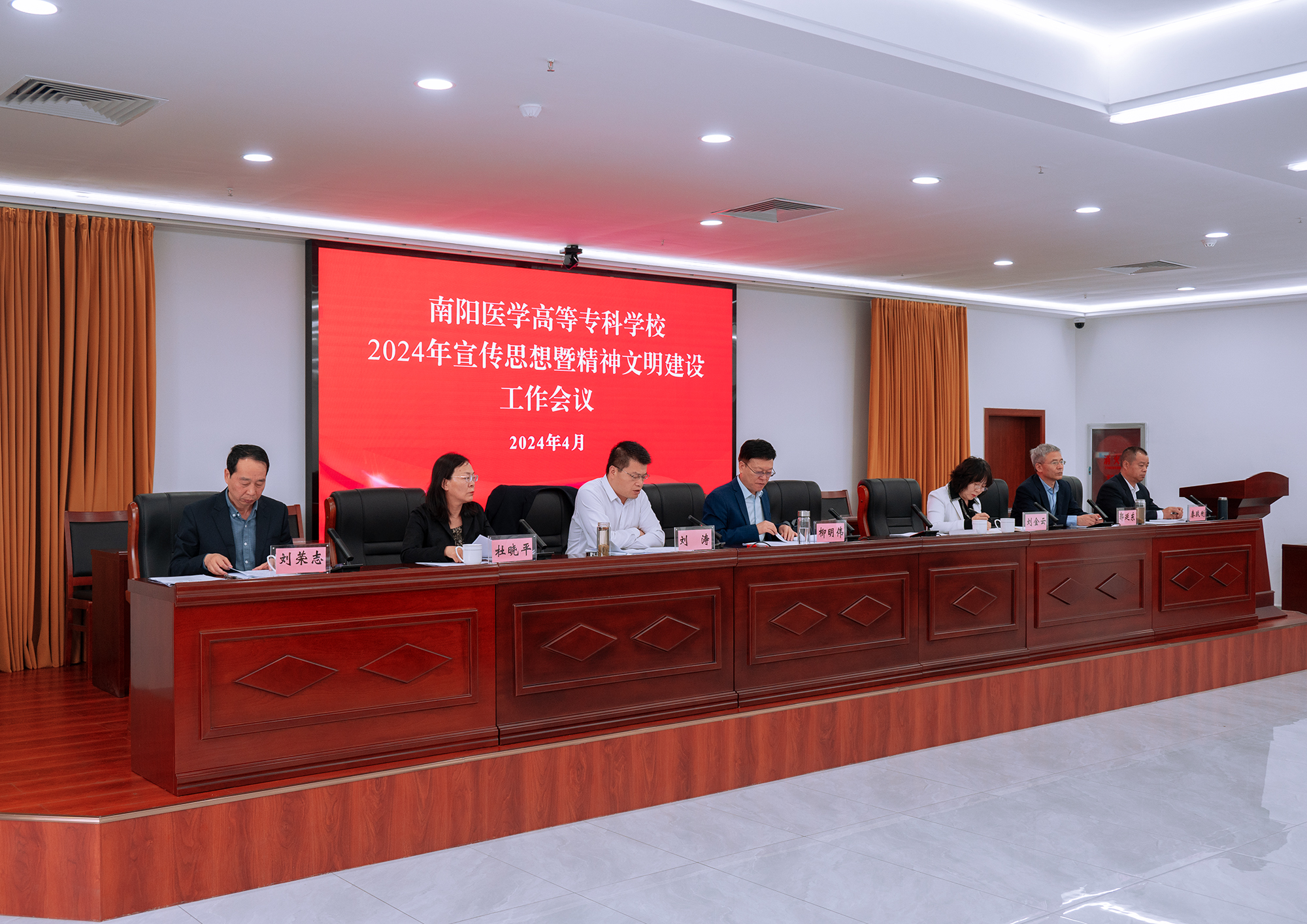 本网讯(文/宣传部 陈铁良)4月30日,我校在仲景文化中心719会议室召开2024年宣传思想暨精神文明建设工作会议,回顾总结2023年主要工作,分析研判当前形势任务和存在不足,安排部署今年的重点工作。党委书记柳明伟、校长范真等领导班子成员出席会议,校本部中层干部、三所附属医院领导班子成员参加会议,党委副书记刘涛主持会议。