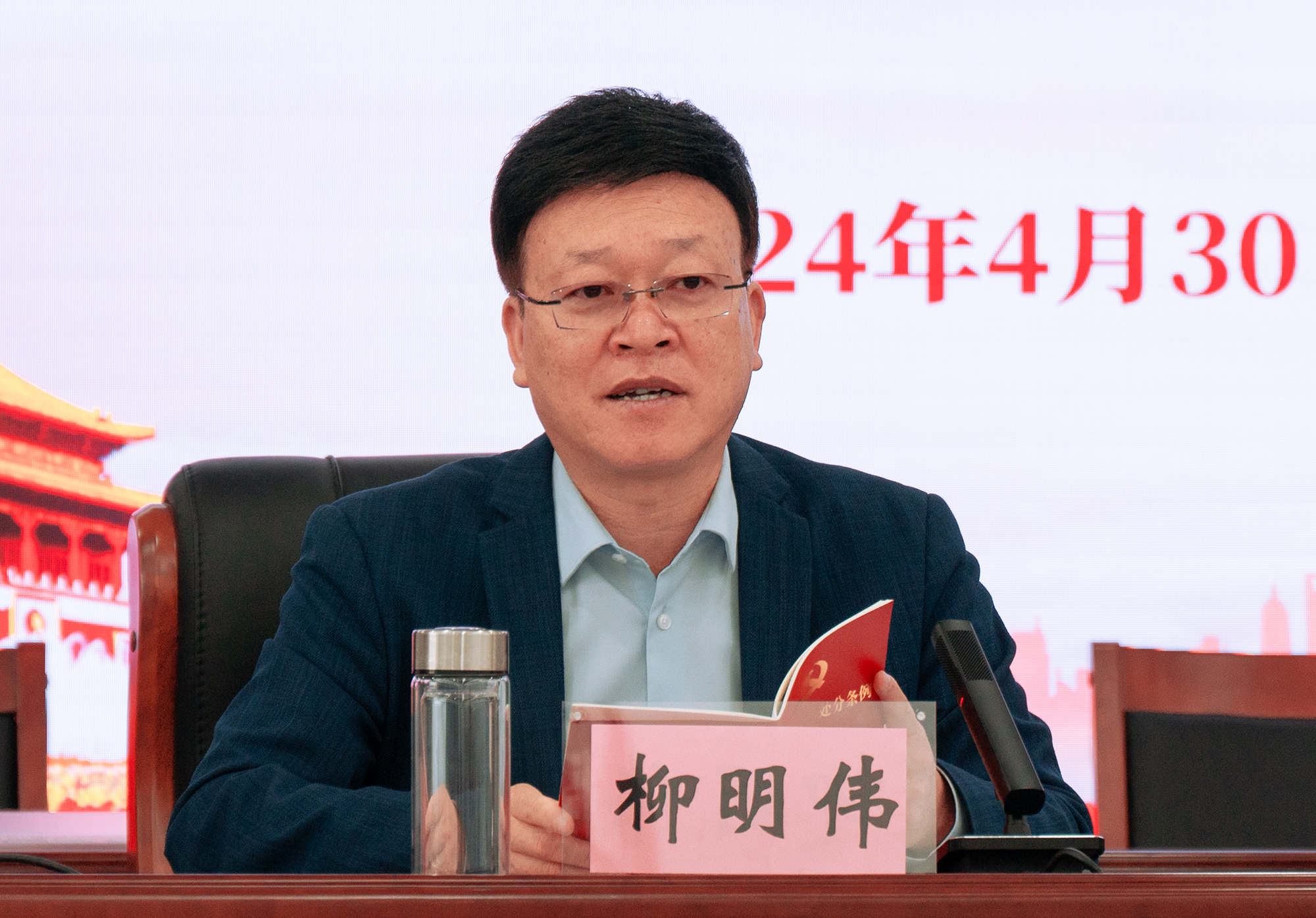 柳明伟指出,各级党组织要精心谋划安排、周密组织实施,确保高质量完成党纪学习教育各项任务。一是准确把握党纪学习教育的目标要求,在学习贯彻《中国共产党纪律处分条例》上下功夫见成效,教育引导党员干部学纪、知纪、明纪、守纪,搞清楚党的纪律规矩是什么,弄明白能干什么、不能干什么,始终做到忠诚干净担当。二是坚持逐章逐条学、联系实际学,抓好以案促学、以训助学,加强分类指导,强化督促检查,对党支部进行全覆盖、全过程指导。三是丰富教育载体,开展读书班,警示教育、廉洁教育系列活动等方式,营造全员参与、人人学纪的浓厚氛围。(编审/李红普 摄影/胡磊)