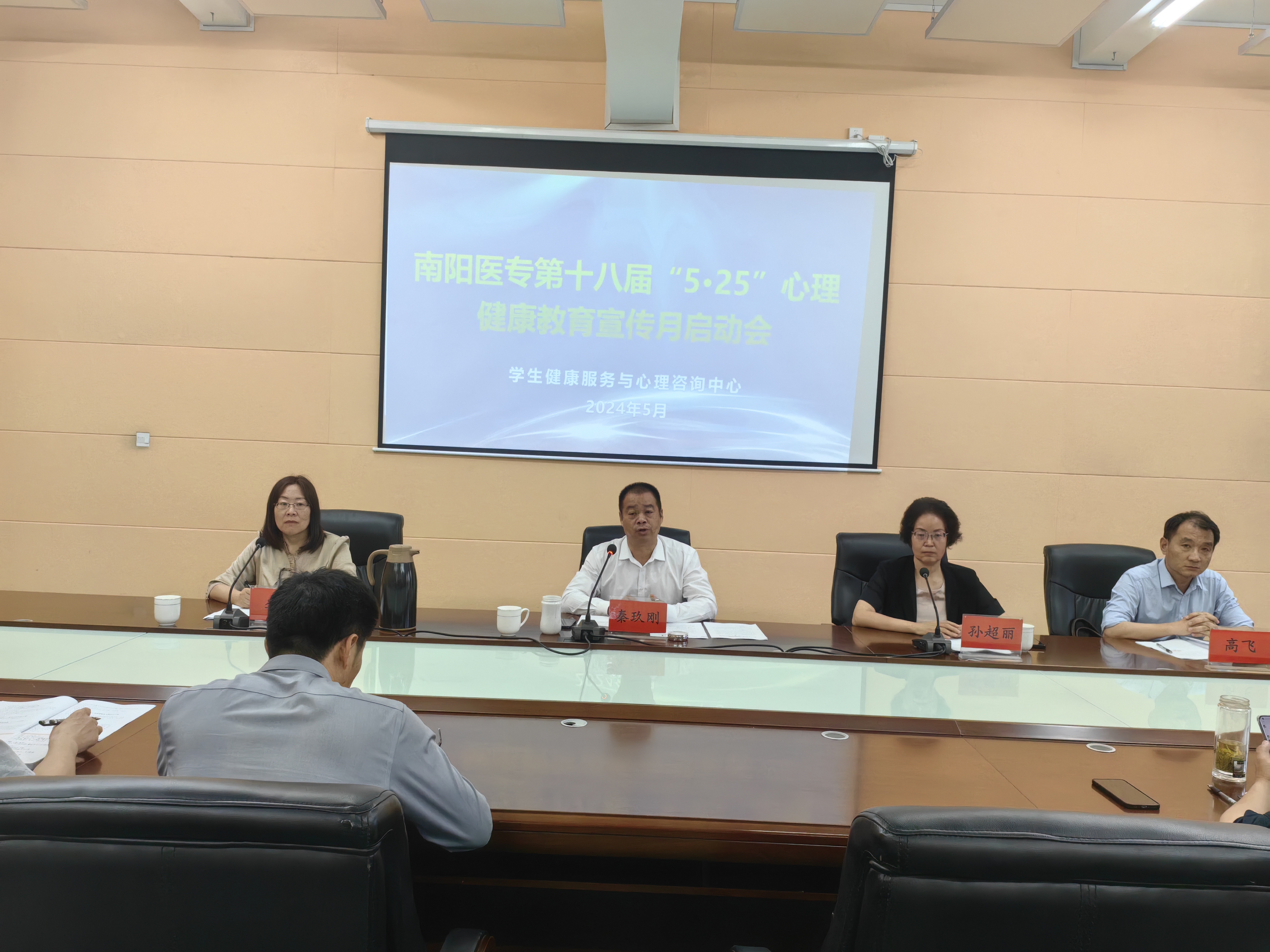 本网讯(文/学生健康服务与心理咨询中心 李孟辉)为深入贯彻落实教育部等十七部委《全面加强和改进新时代学生心理健康工作专项行动计划(2023-2025年)》文件精神,进一步提高我校心理育人工作质量,促进学生心理健康素质的全面提升,5月10日上午,南阳医专第十八届“5∙25”心理健康教育宣传月启动会在仲景西区体育馆1楼会议室举行。校党委委员、副校长秦玖刚出席会议,各系(院)党总支书记、副书记、心理专干,学生健康服务与心理咨询中心全体人员参加会议。仪式由学生健康服务与心理咨询中心副主任李可主持。