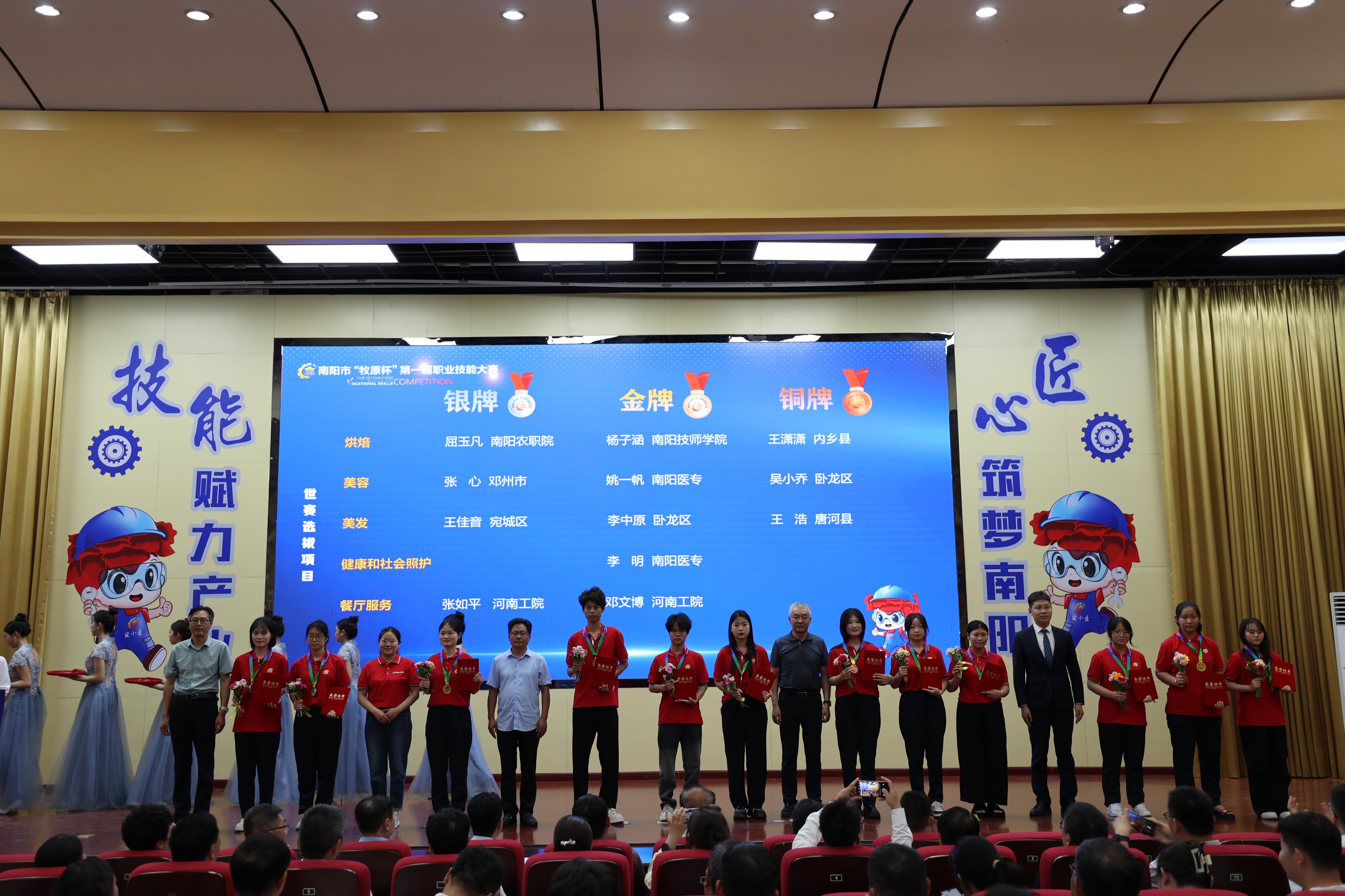 本网讯(文/继续教育学院 刘铮)5月16日,以“技能赋力产业·匠心筑梦南阳”为主题的南阳市“牧原杯”第一届职业技能大赛盛大开幕。我校承办健康和社会照护(世赛选拔项目)、健康照护(国赛精选项目),社会体育指导(健身)(国赛精选项目)、化学实验室技术(世赛选拔项目)、美容(世赛选拔项目)等五个赛项的比赛,全市各类技能人才40余人齐聚我校,进行激烈角逐。我校共派出21名选手,参加12个赛项的比赛。