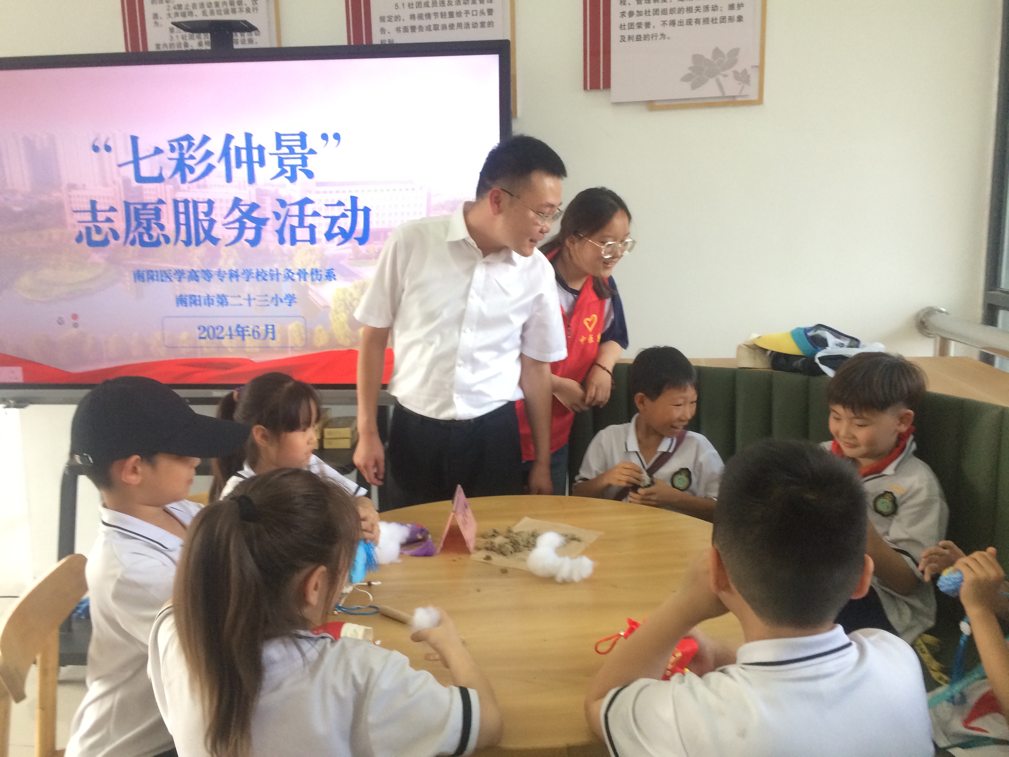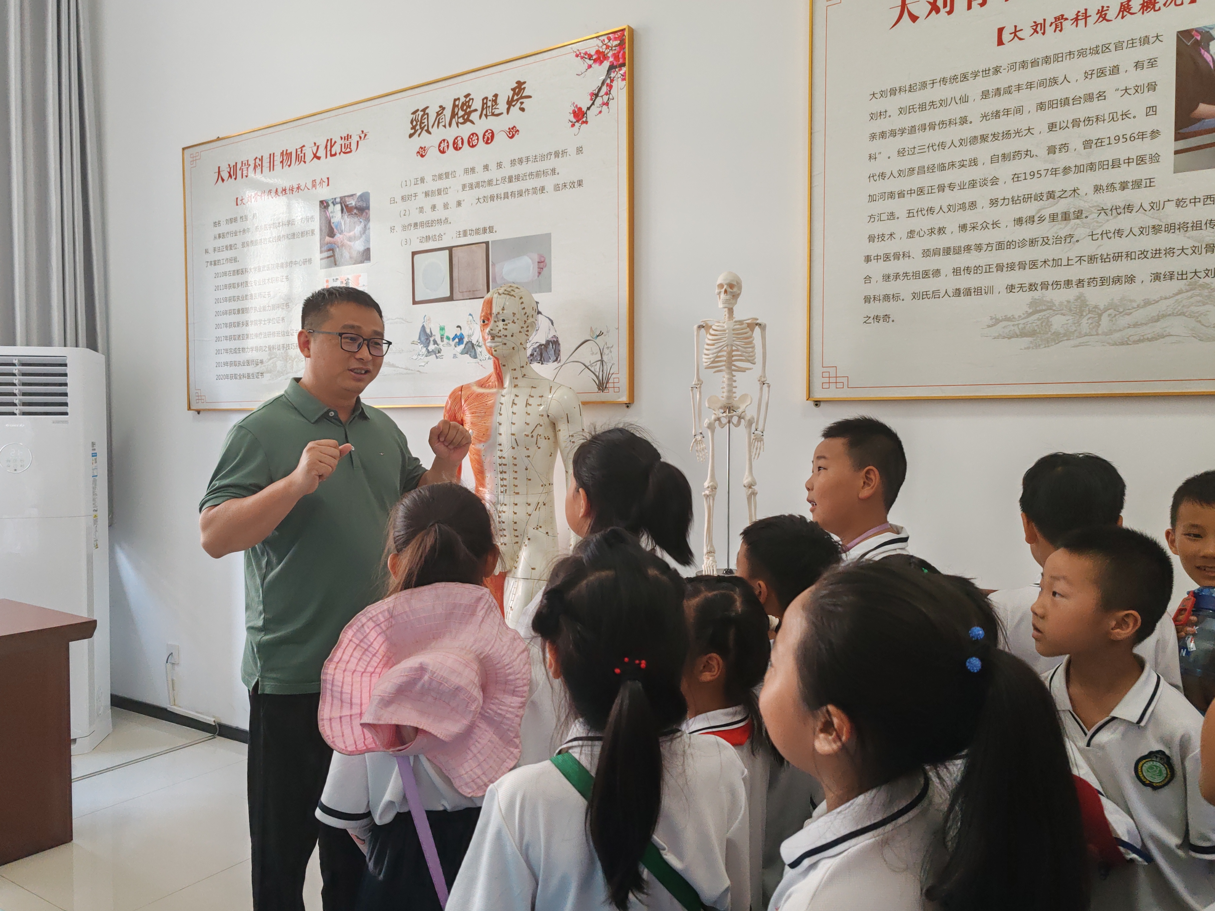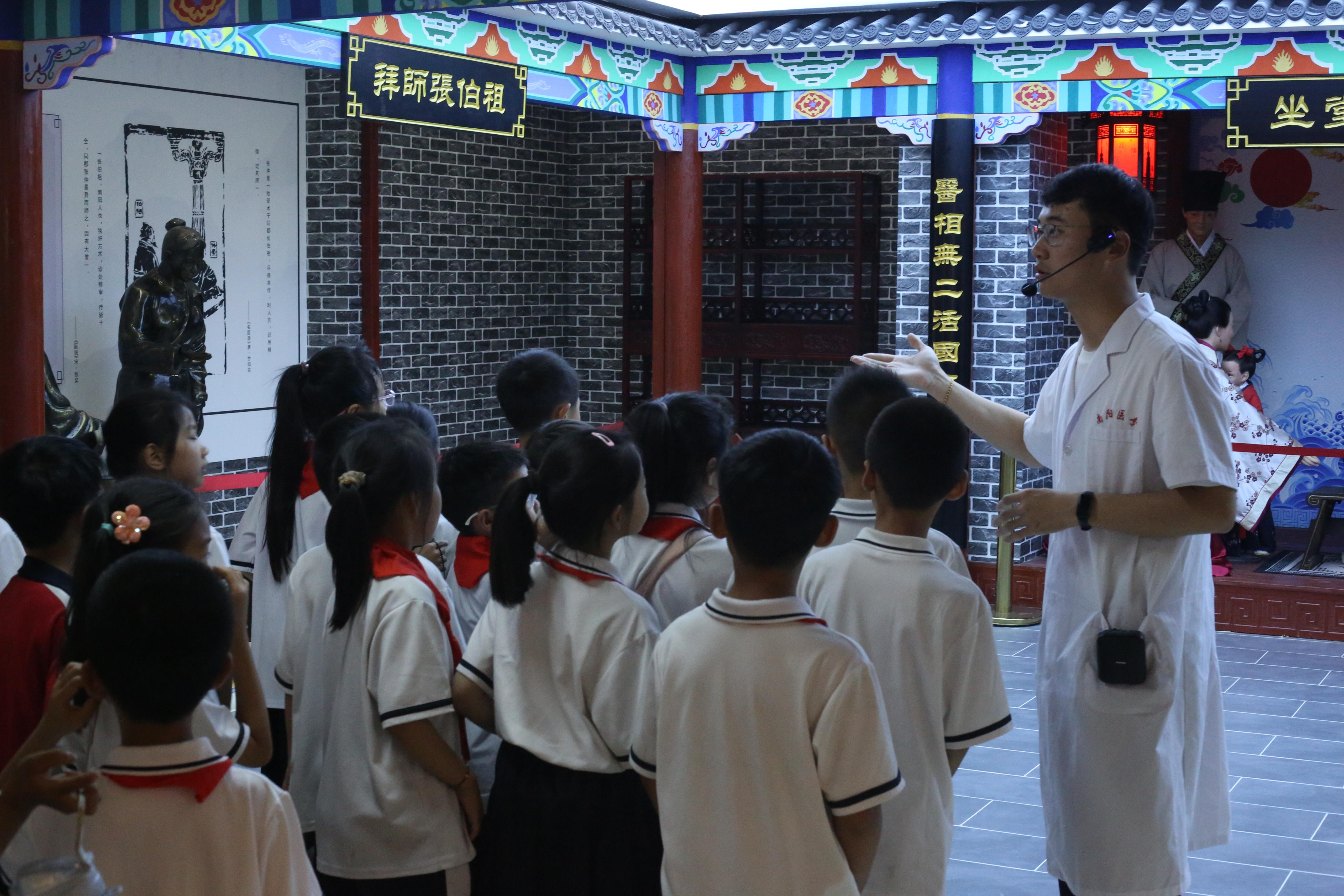 随后,第二十三小学来访师生在针灸骨伤系“七彩仲景”志愿服务队志愿者的带领下参观了南阳医专中医药科技馆和传统医药非物质文化遗产传承创新中心。
