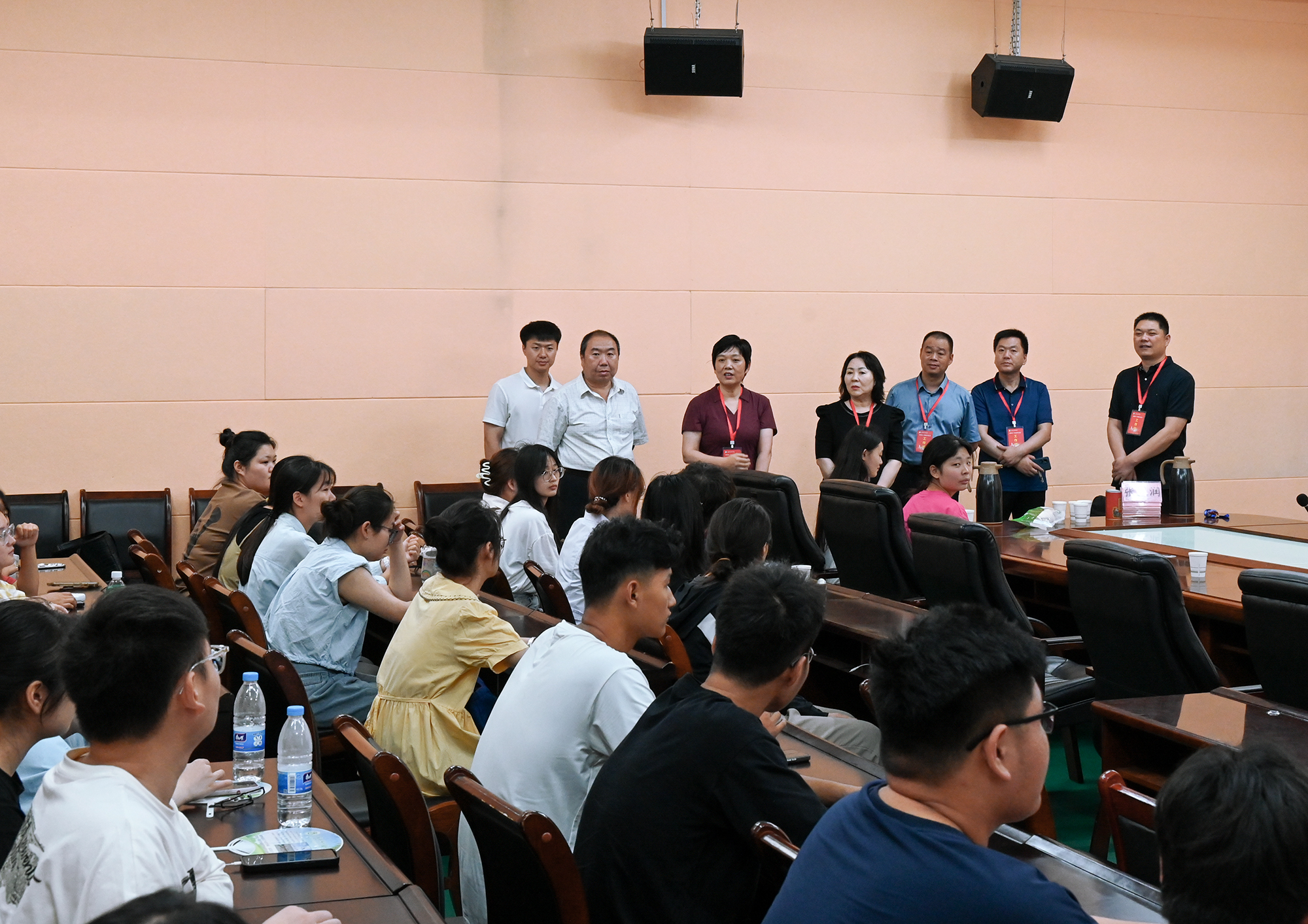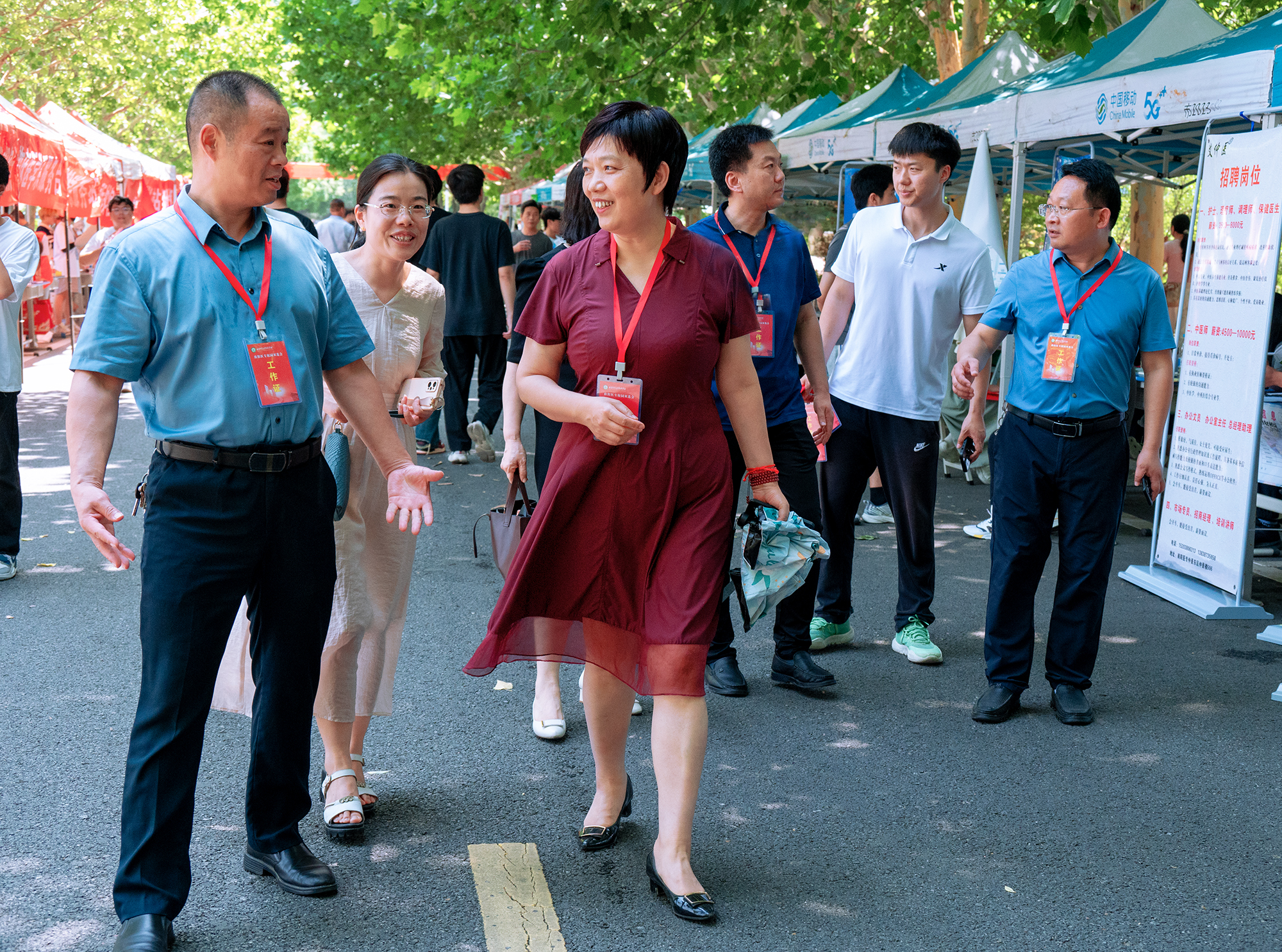 校领导现场指导工作,与参会单位、应聘学生进行亲切交谈。