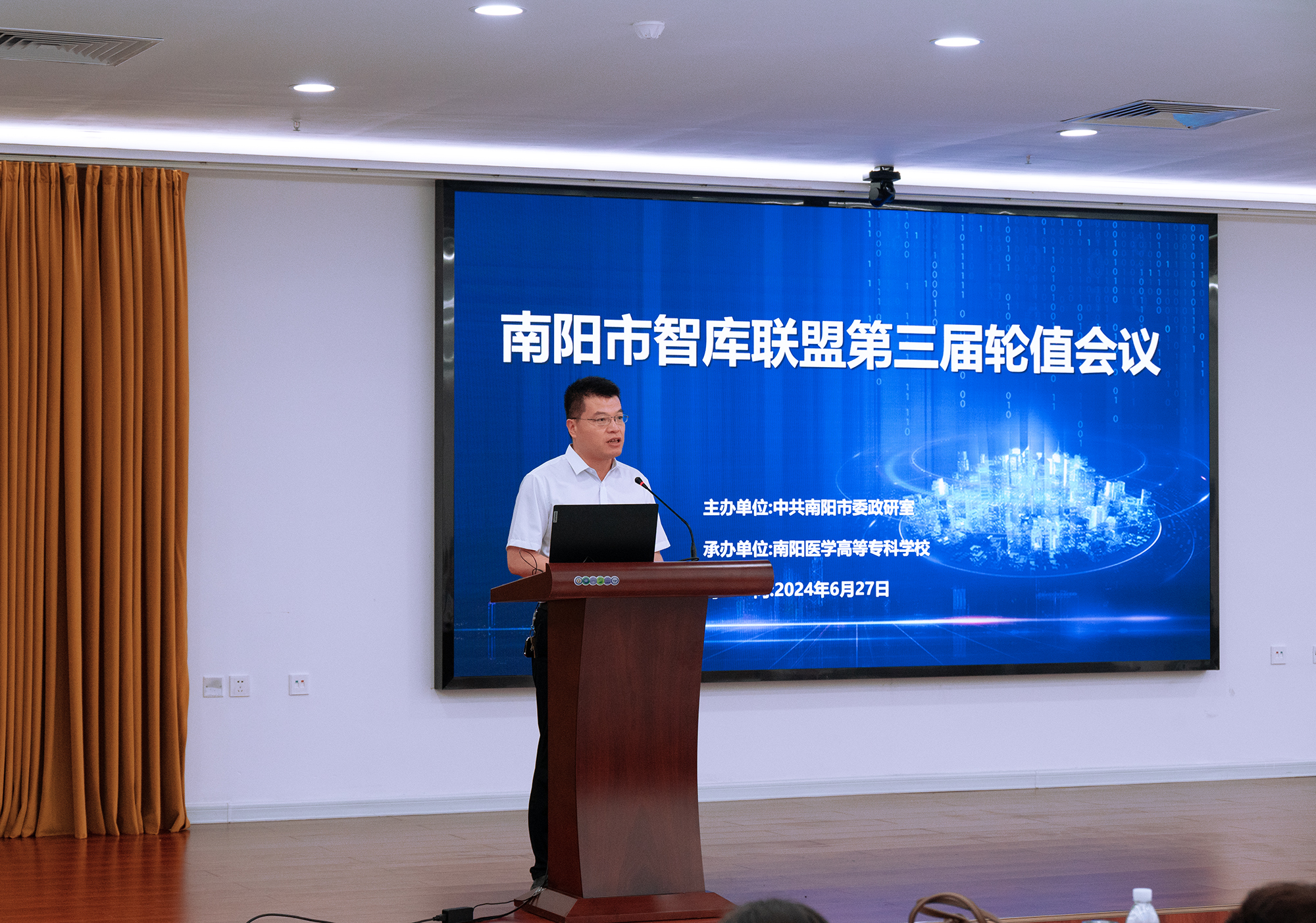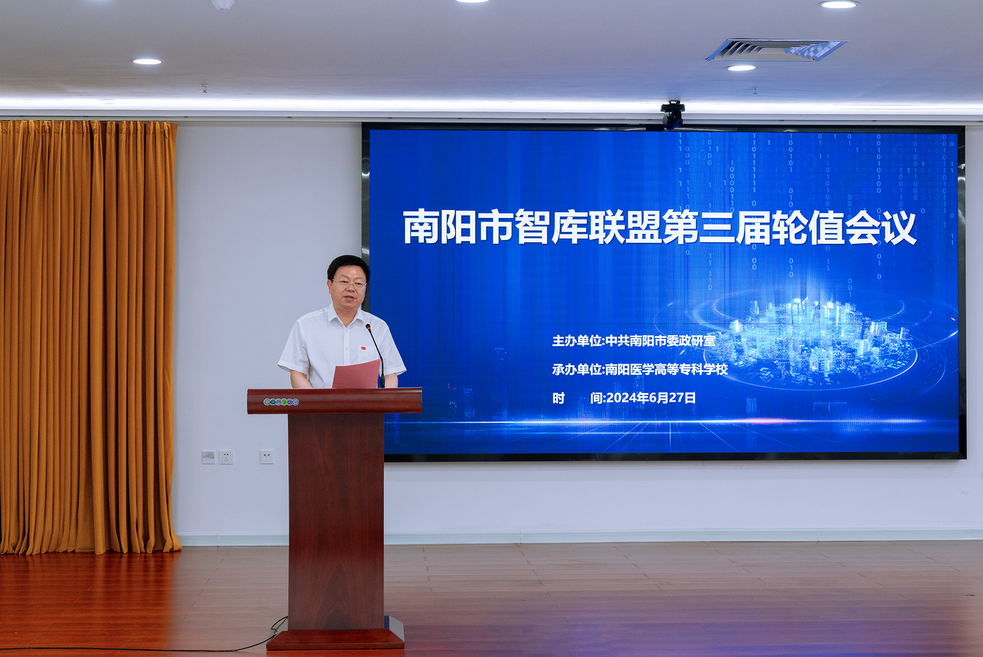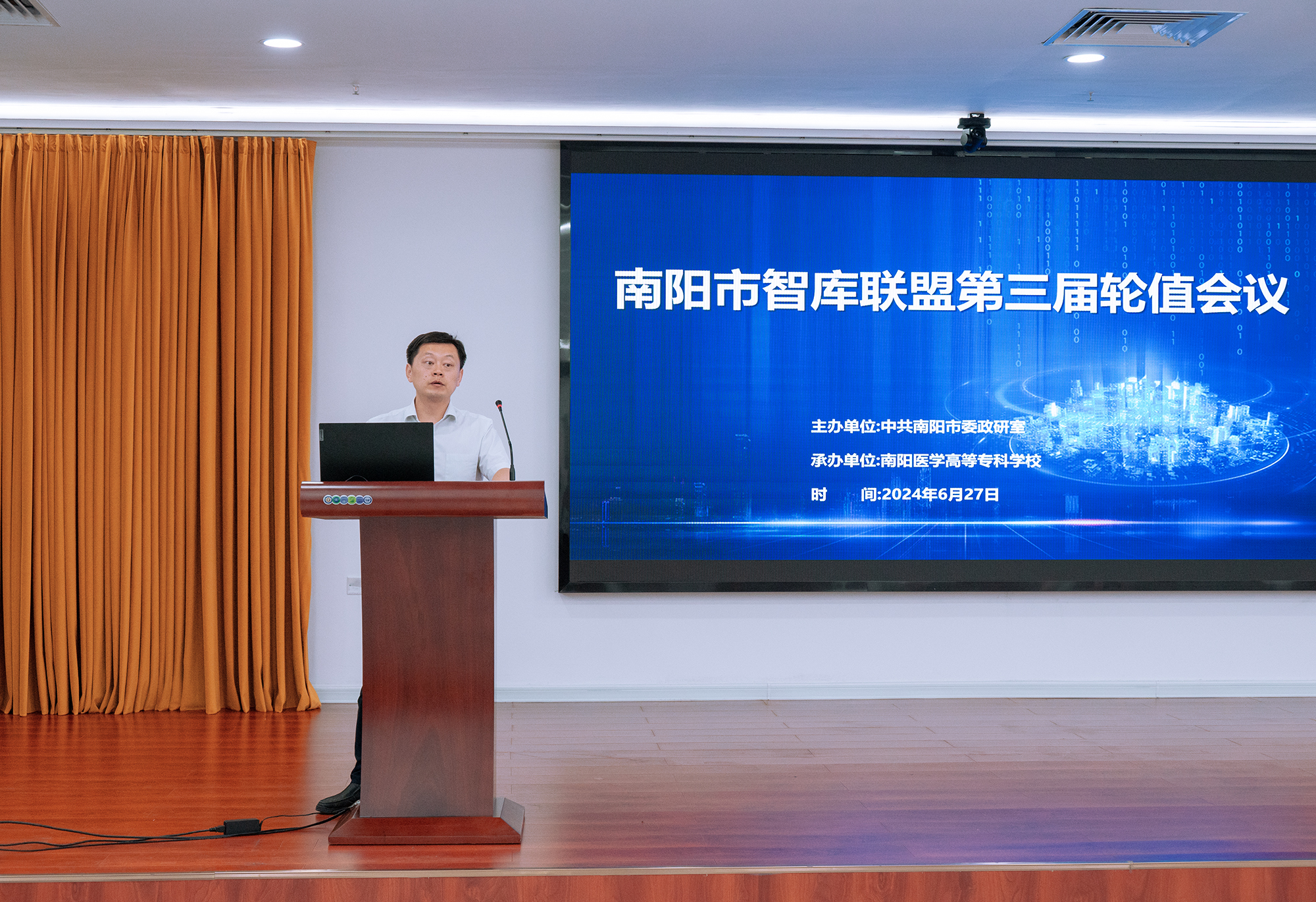 本网讯(文/党政办 王雅喆)6月27日上午,南阳市智库联盟第三届轮值会议在南阳医专成功召开。会议旨在总结智库联盟的阶段性成果,研讨做好咨政研究,并规划未来研究方向。市委常委、市委秘书长兼智库联盟理事长李鹏,市委改革办主任李康等出席会议。会议由南阳医专校长范真、党委副书记刘涛主持。