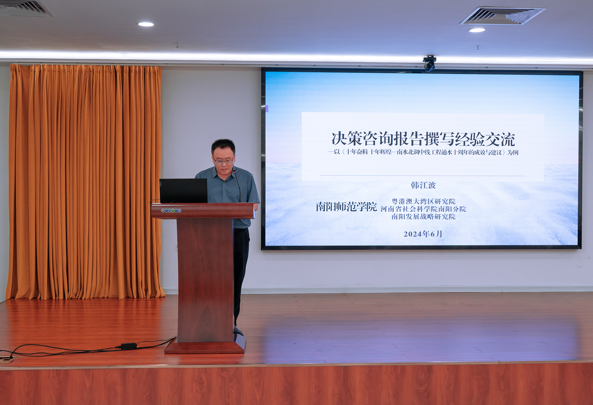 会议期间,华北水利水电大学公共管理学院院长李贵成教授以《如何进一步做好咨政研究》为题进行了专题授课。南阳医专校长范真和南阳师院发展战略研究院副院长韩江波分享了优秀研究成果的创作经验。范真希望广大科研工作者积极参与申报各类课题,在思想上高度重视智库联盟的咨政工作,努力当好我市经济社会发展的参谋和助手,充分发挥高校对地方经济社会发展的推动作用。(编审/李红普 摄影/胡磊)