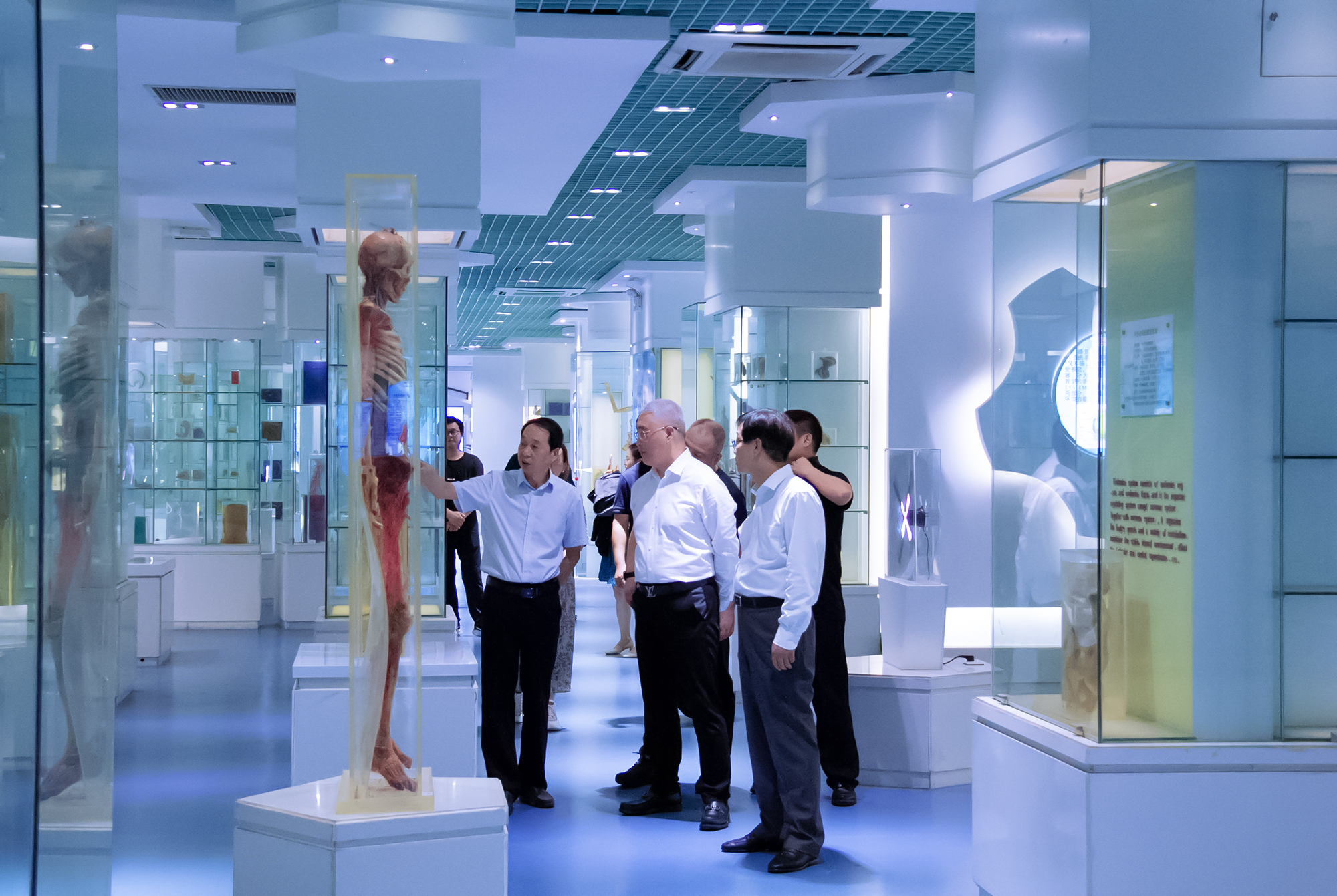 柳明伟对各位专家的到来表示热烈欢迎,介绍了学校历经73年的发展情况和传统医药非遗办学特色。范真陪同专家考察了人体生命科学馆、重大传染病精准防控数字影像科技馆、中医药科技馆、传统医药非遗中心,介绍了学校基础医学、临床医学、医学影像学的学科专业建设情况。考察期间,各位专家对我校的学科专业建设提出很多宝贵意见。