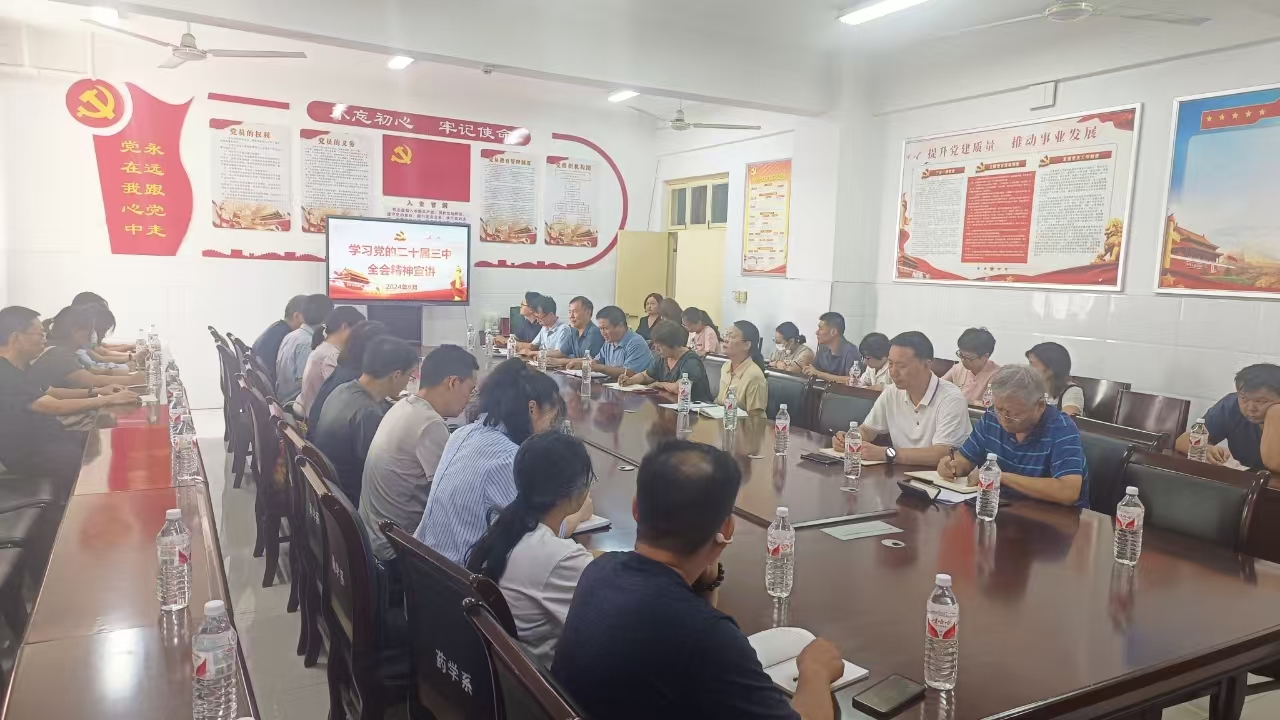 本网讯(文/药学系 赵伊娜)9月11日下午,校党委委员、工会主席杜晓平深入药学系主持召开专题会议,宣讲党的二十届三中全会精神。马克思主义学院、工会、团委、离退处、药学系和仲景文化研究院等科级以上干部及师生代表参加会议。