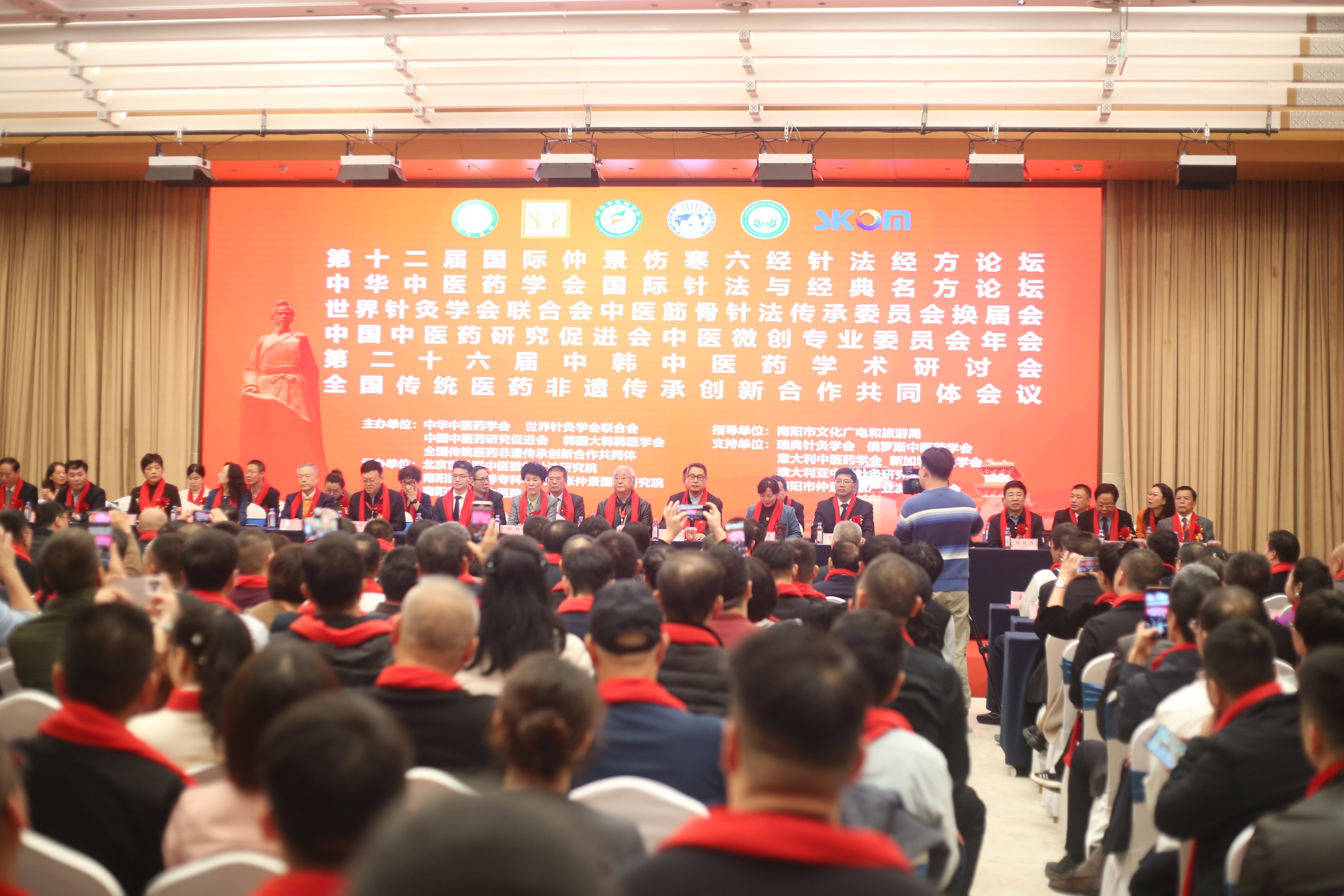 本网讯(文/针灸骨伤系 马驰)11月16日至17日,第十二届国际仲景伤寒六经针法经方论坛、中华中医药学会国际针法与经典名方论坛、世界针灸学会联合会中医筋骨针法传承委员会换届会、中国中医药研究促进会中医微创专业委员会年会、第二十六届中韩中医药学术研讨会、全国传统医药非遗传承创新合作共同体会议在医圣文化园仲景书院举行。