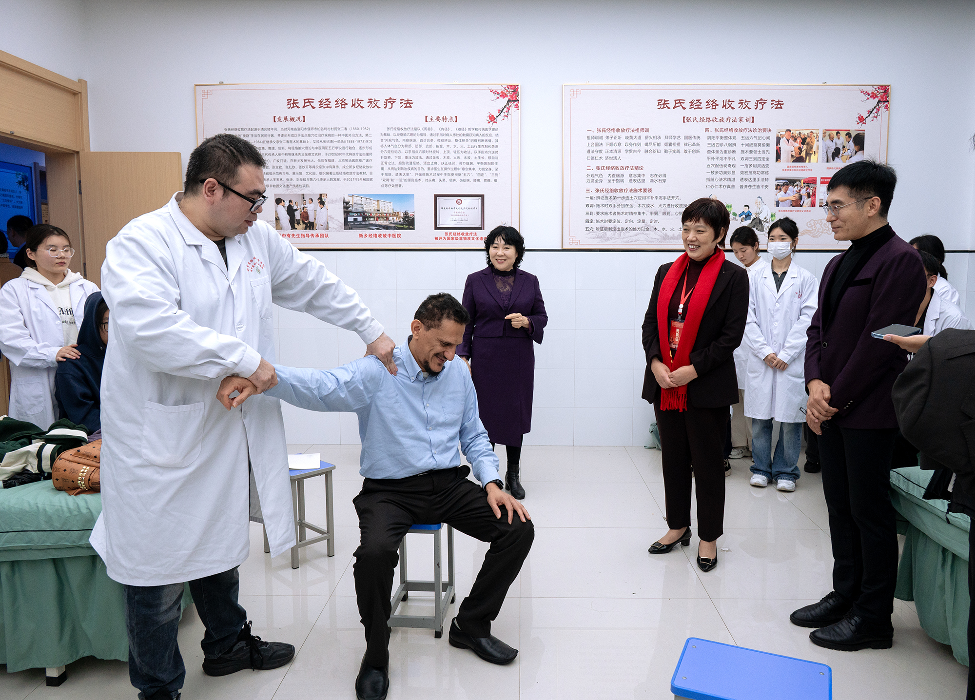 阿比德·穆罕纳德一行参观了我校非遗传承创新中心,与非遗传承大师进行了深入交流,详细了解了传统中医药文化在现代医药产业中的应用情况,亲身体验了中国传统中医药文化的独特魅力。