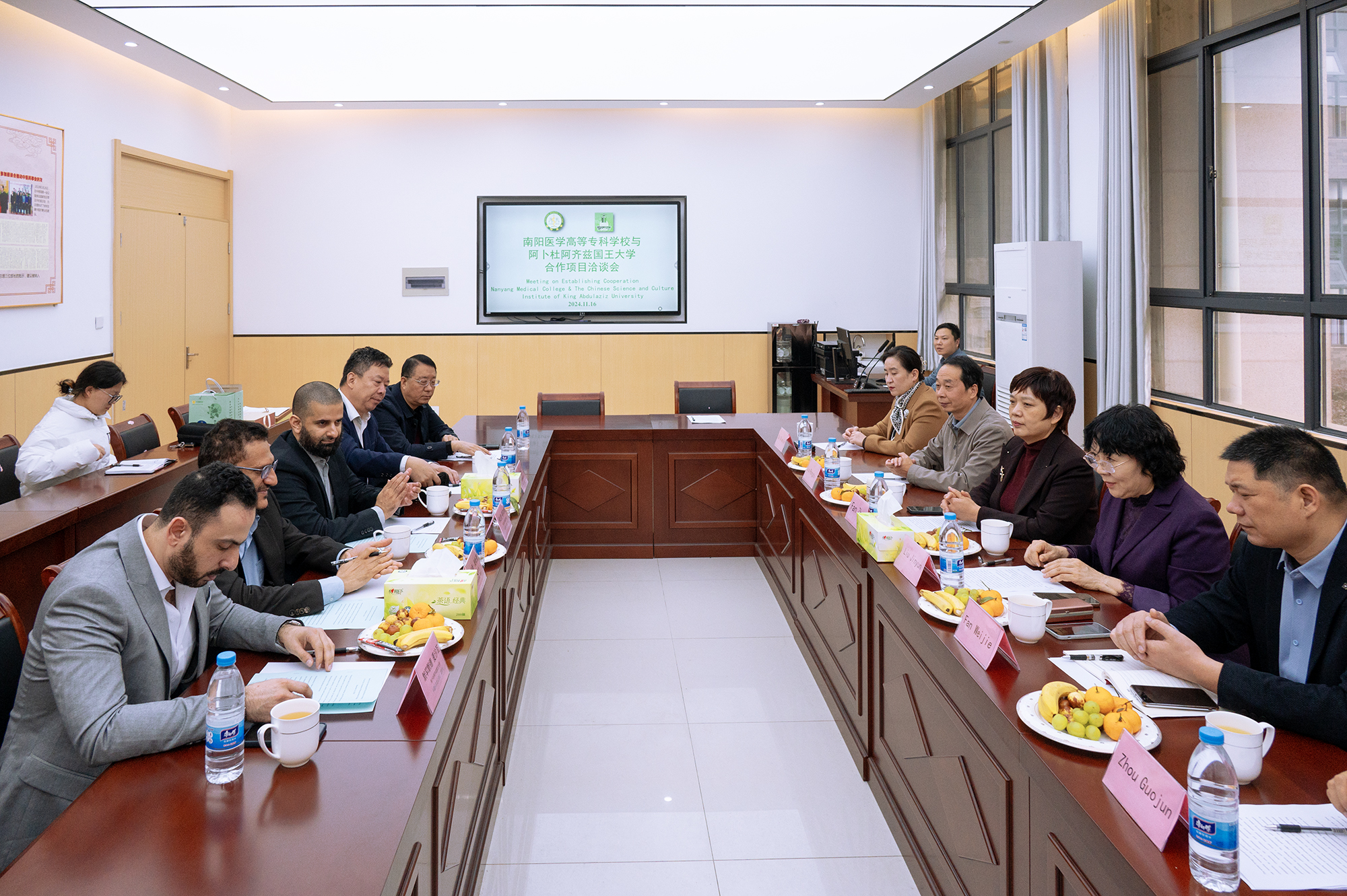 参观结束后,我校与阿卜杜阿齐兹国王大学进行了会谈交流。范真指出,作为阿拉伯地区的一流大学,阿卜杜阿齐兹国王大学与许多国际知名大学和研究机构建立了合作关系,为学生提供了广阔的国际视野和交流机会。南阳医专同样致力于拓展国际交流渠道,积极寻求优质的国际合作伙伴,让学生在全球化的教育环境中成长,提升他们的跨文化沟通能力和国际竞争力。此次与阿卜杜阿齐兹国王大学的交流,对双方而言都是一个极为难得的契机,希望双方能够相互了解、友好协商,共同开启国际合作新篇章。