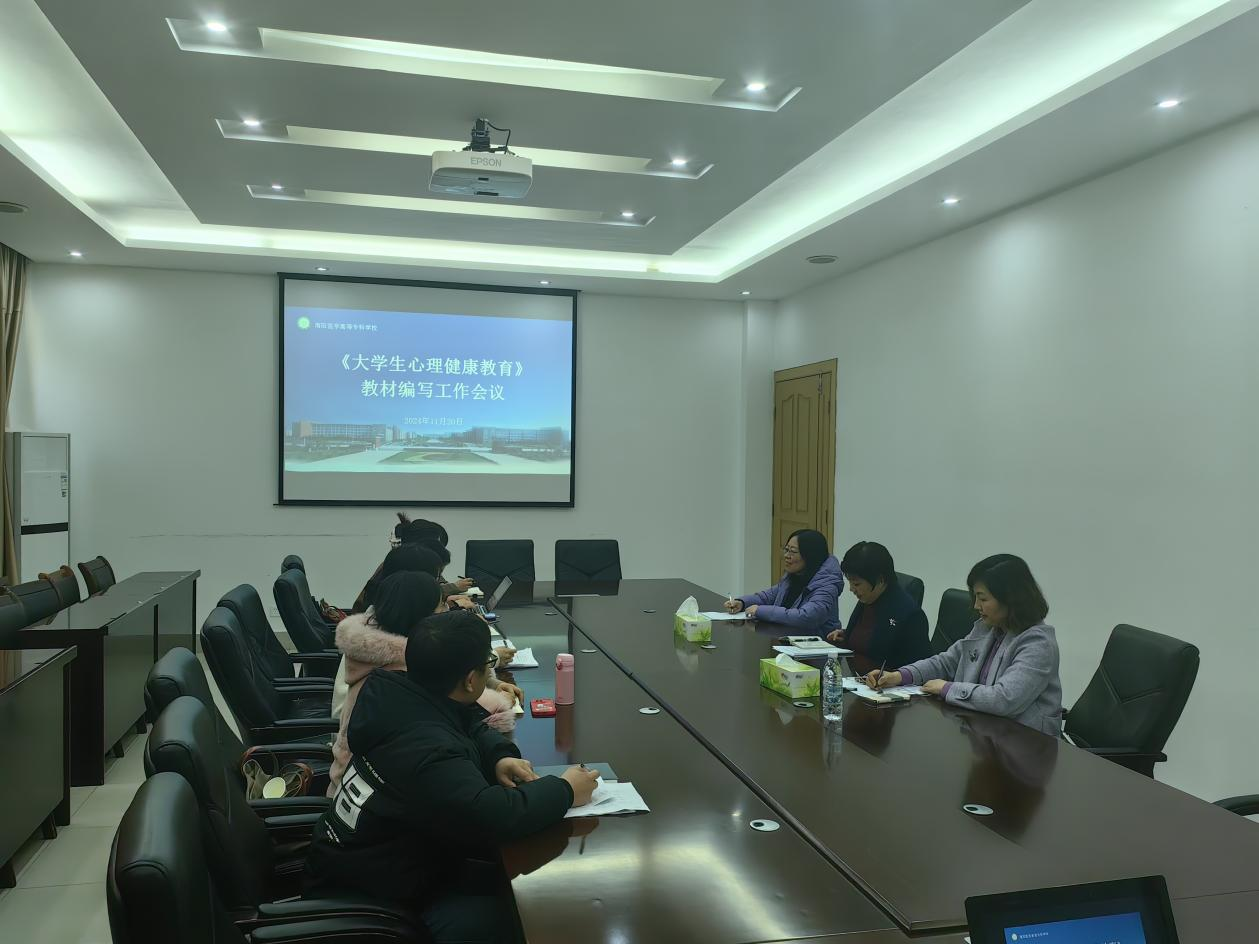 本网讯(文/心理健康关爱与教育中心 李孟辉)11月20日,人民卫生出版社“点亮心灯”心理健康教育系列教材编写工作会议在我校1号行政楼3楼会议室举行,校长范真担任该教材第一主编并出席会议,心理健康关爱与教育中心和公共教学部相关参与编纂教师参加会议。人民卫生出版社华中分社副总编辑郑帅、编辑邱璐颖,河南护理职业学院、南阳科技职业学院、天津现代职业技术学院、宛西中等专业学校等多家心理健康产教融合共同体成员单位通过线上方式参加会议。会议由心理健康关爱与教育中心副主任李可主持。