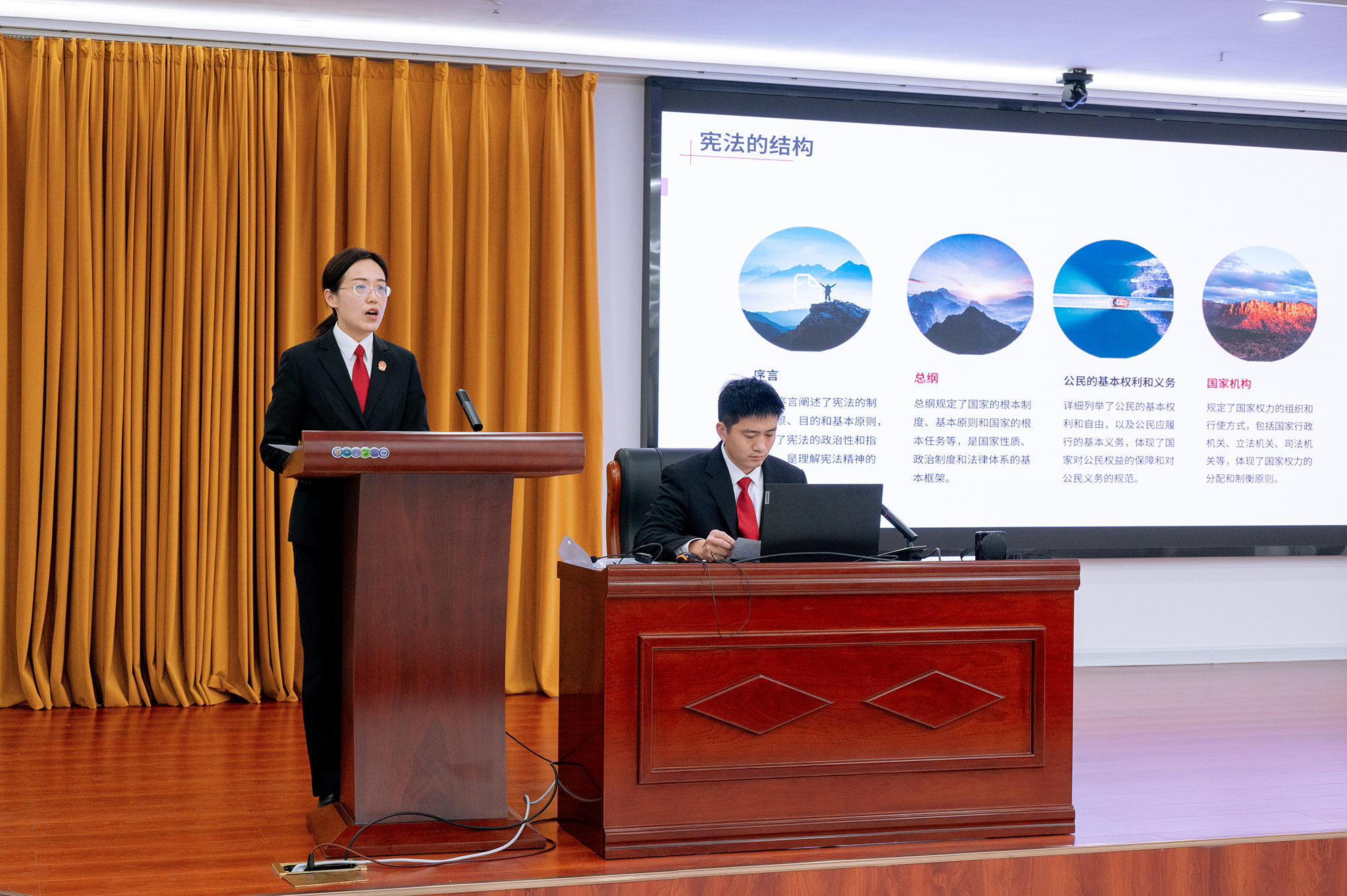 少审庭副庭长艾立以宪法为基石,为师生们开启了一扇法治之门。她以亲切的语言和生动的案例,阐述了宪法作为“根本大法”在保障公民权利、维护社会稳定中的核心作用,带领同学们发现宪法与每个人生活的紧密联系。