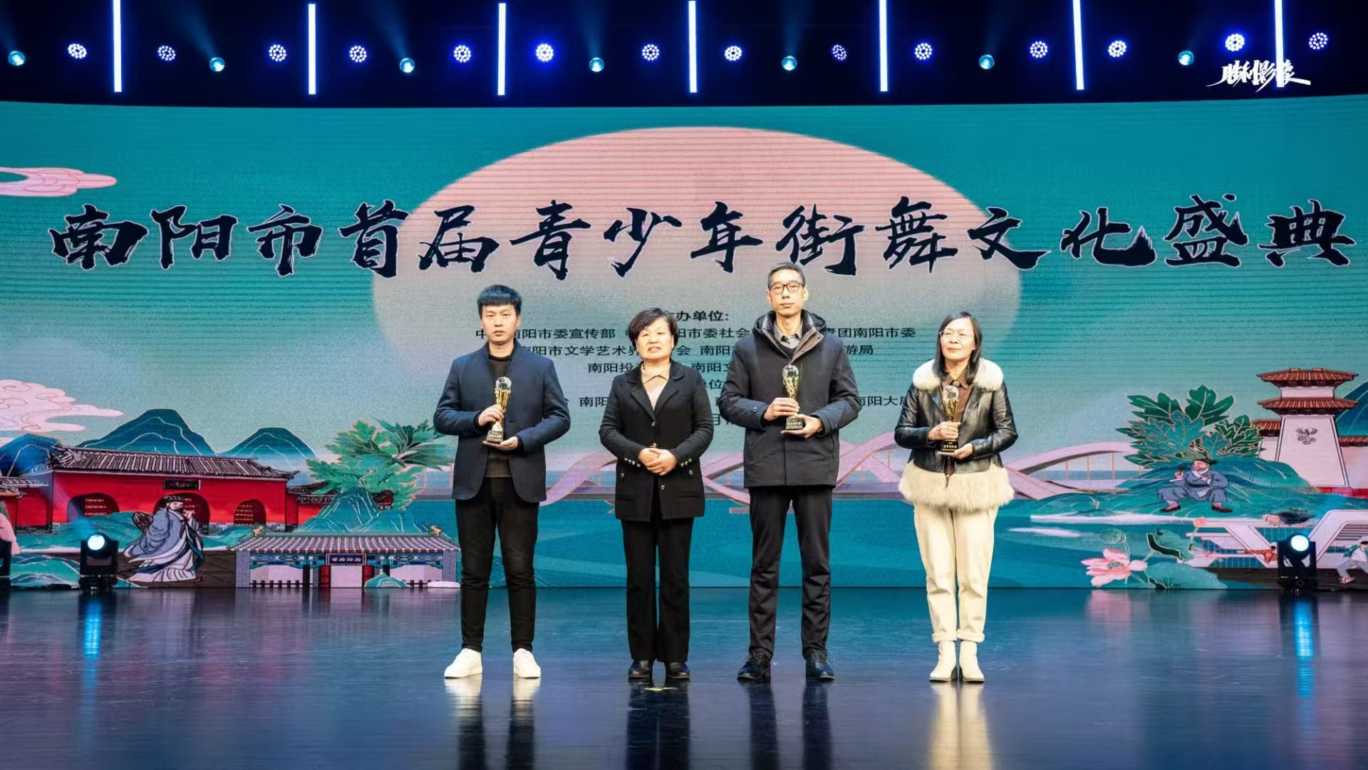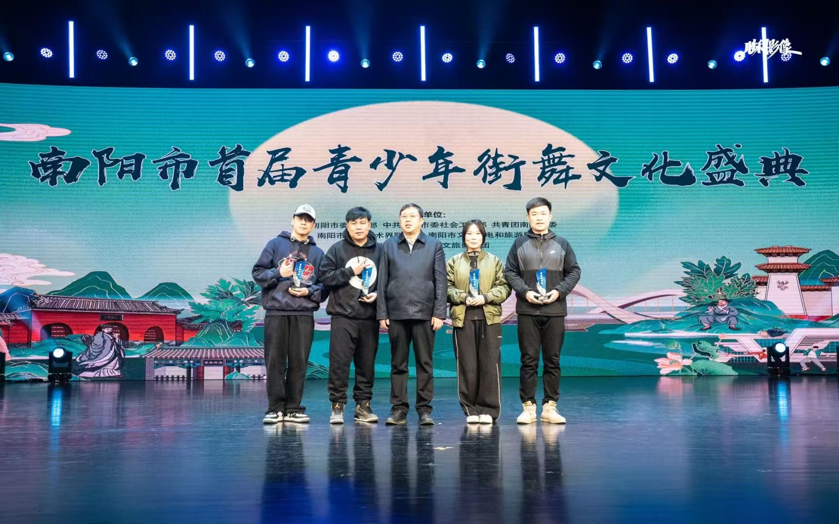 本网讯(文/校团委 张佳媛)1月12日,由中共南阳市委宣传部、中共南阳市委社会工作部、共青团南阳市委等部门主办的南阳市首届青少年街舞文化盛典在南阳大剧院隆重举行。校党委委员、工会主席杜晓平,校团委书记董菡、校团委副书记庞博、体育保健与运动医学系副书记习茵及街舞社团十余名同学参加了此次盛典。