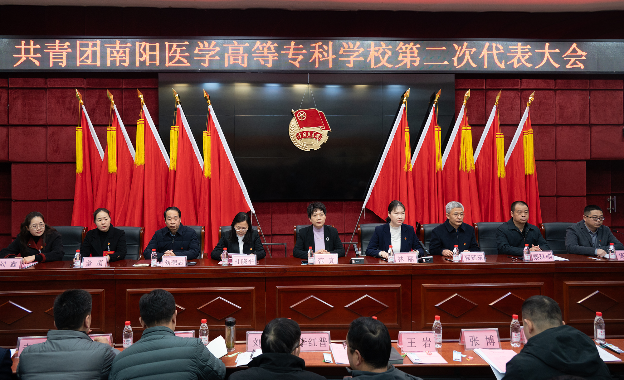本网讯(文/团委 韩江源)3月5日上午,共青团博鱼官方网站,博鱼BOYU(中国)第二次代表大会开幕式在仲景西区图书馆报告厅召开。校党委副书记、校长范真,共青团南阳市委副书记林丽,工会主席杜晓平,副校长郭延东、刘荣志、秦玖刚出席大会开幕式,学校党政部门主要负责人、系(部、院)党总支书记以及183名团代表参加。