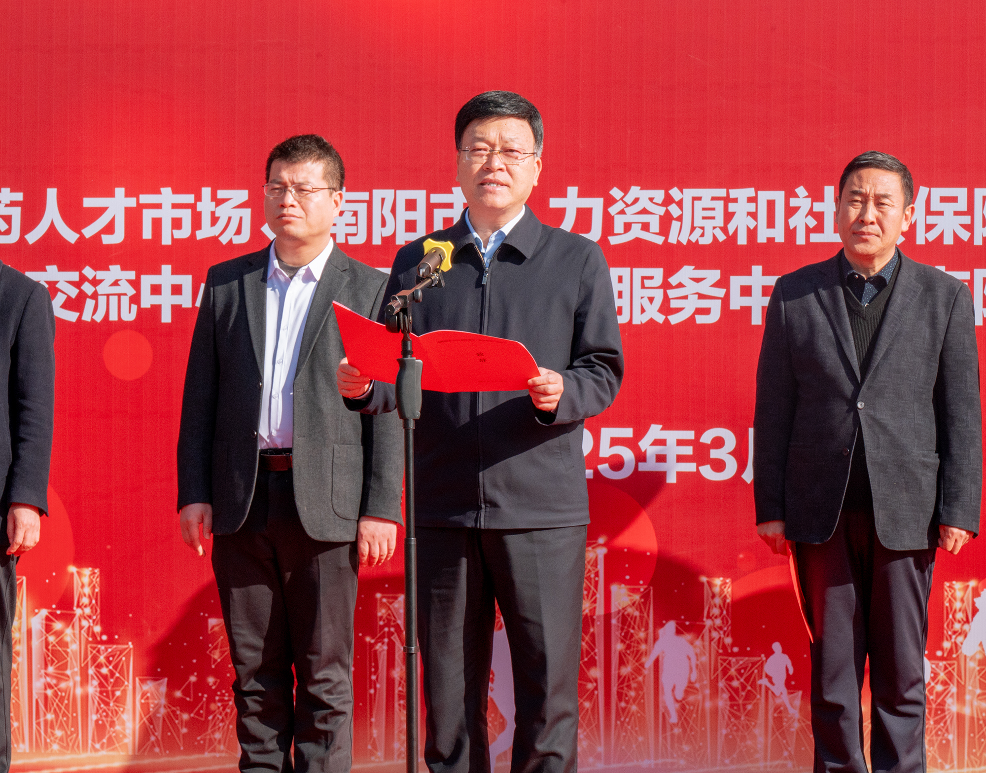 校党委书记柳明伟在致辞中介绍了学校推行“四证融合”,不断增强毕业生就业竞争力的做法与成效。勉励同学们积极与招聘单位沟通交流,找到适合自己的就业岗位。学校将与行业企业和用人单位在校企合作、科技服务、基地建设等方面持续开展合作交流,实现产学研融合与人才供需有效对接。市人社局二级调研员柯其锐,桐柏县卫健委党组书记周晨阳及用人单位代表、毕业生代表先后发言。