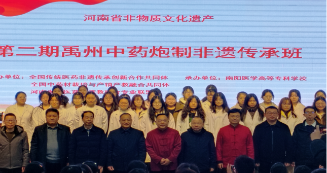 本网讯(文/药学系 李玉姗)3月2日,第二期禹州中药加工炮制技艺非遗传承班在南阳医专正式开班,本次传承班由南阳医专与禹州市孙思邈医药研究院联合举办。校党委委员、副校长刘荣志,禹州市孙思邈医药研究院院长、市级非遗传承人逯安新,禹州市传统中医药文化研究院院长、市级非遗传承人黄潇,许昌市级非遗传承人、禹州市易晟药业有限公司总经理许宗辉出席,相关部门负责同志及药学系150名学员参加。