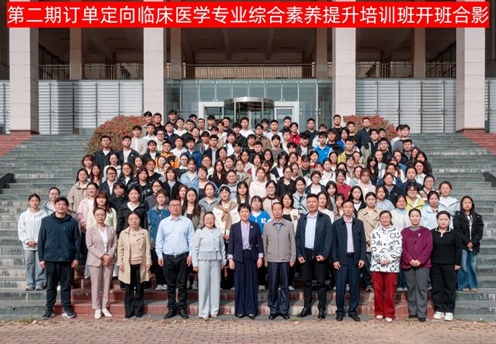 本网讯(文/临床医学系 周毕军)4月7日上午,南阳医专第二期订单定向临床医学专业综合素养提升培训开班仪式在图书馆五楼报告厅举行。校党委副书记、校长范真,校党委委员、副校长刘荣志出席,教务处、临床医学系相关部门领导及授课教师代表、第二期订单定向班全体学员参加。开班仪式由临床医学系主任李玲主持。