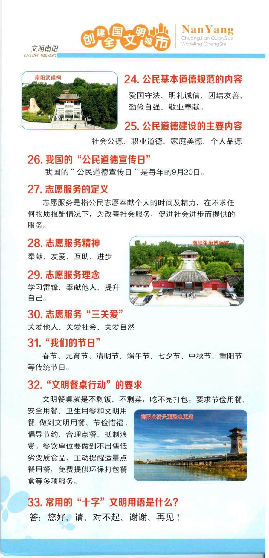三、全校师生员工在熟知《创建全国文明城市市民文明手册》各项内容的基础上,要熟背以下三项内容。