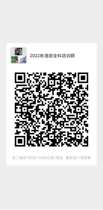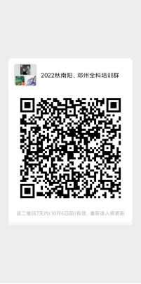根据《河南省卫生健康委关于2022年度全科医生转岗培训工作实施方案的通知》(豫卫科教便函〔2022〕27号)文件通知要求,结合我校工作实际, 2022 年度第一批全科医生转岗理论培训定于2022年10月10日开课。由于疫情原因,“采取网上远程学习和集中面授相结合的方式进行”。网上远程培训开始时间为2022年10月10日,培训具体事宜由班主任在微信群中通知。为了方便学员学习与管理,请通知各地区培训学员扫码进入各地市微信群(微信群二维码附下),详细授课情况,由班主任在微信群中具体通知。