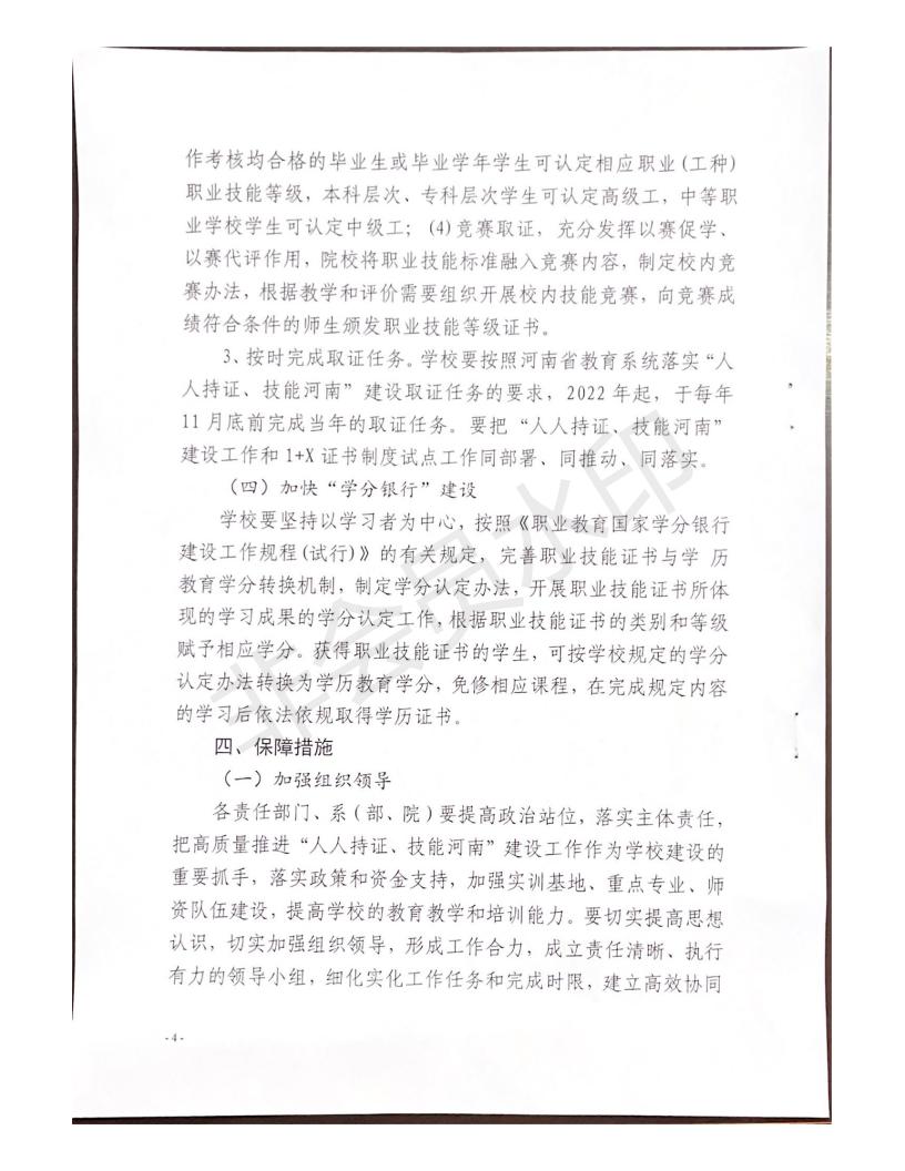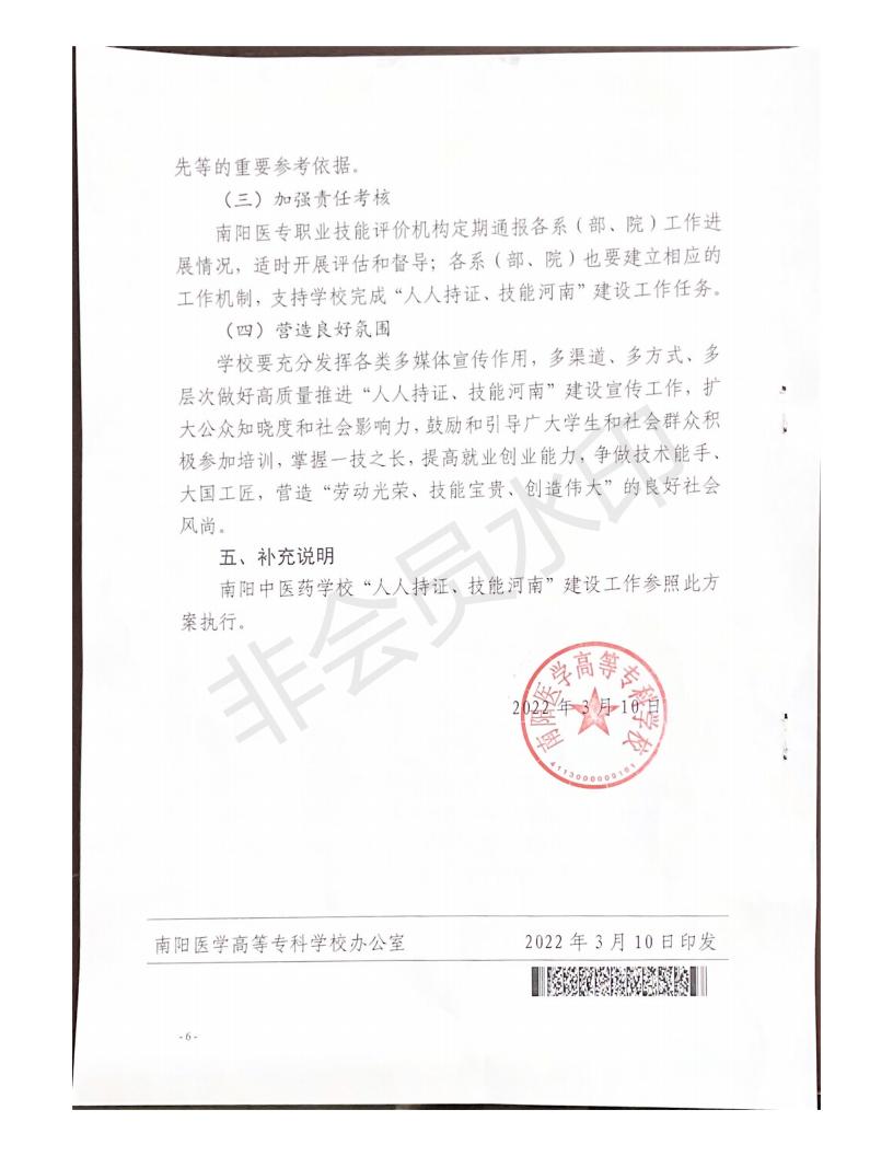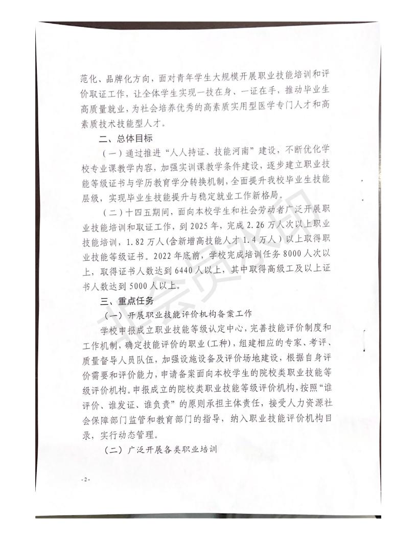 南阳医专关于落实“人人持证、技能河南”建设工作任务实施方案